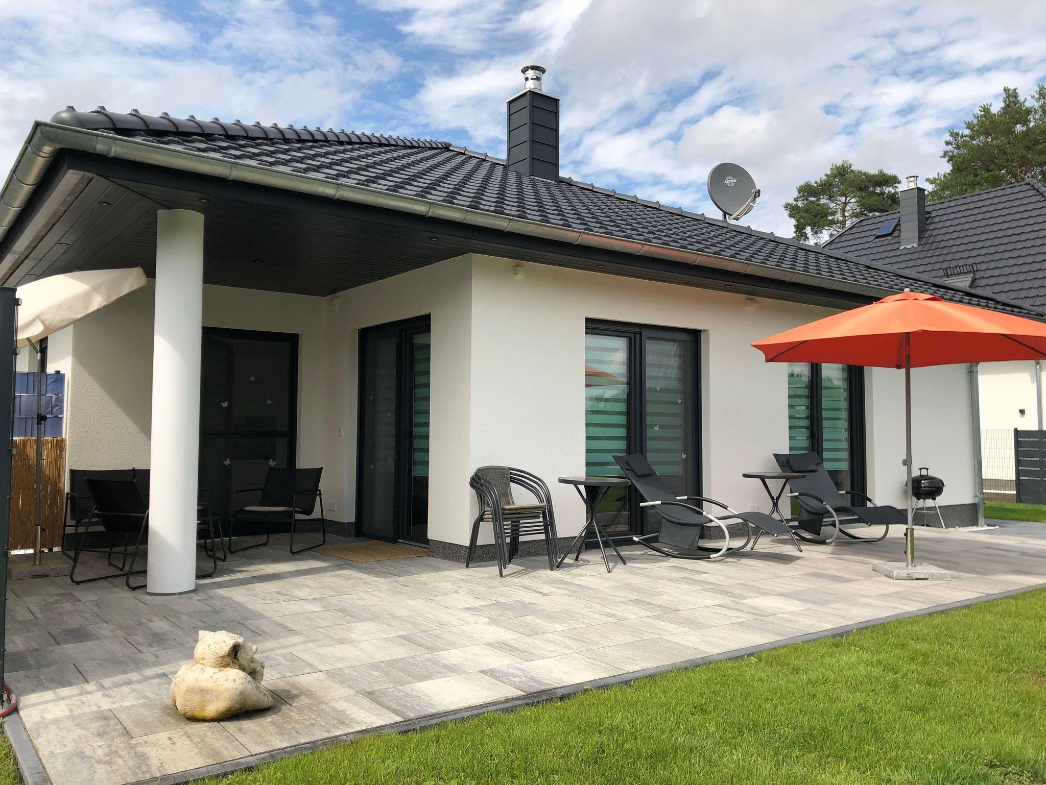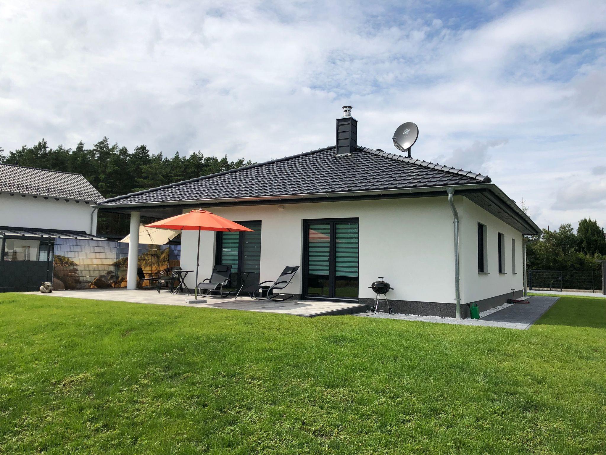 Herzlich Willkommen in unserem neu gebauten Bungalow SeenSuchtLausitz auf 1500 qm Grundstücksfläche. Das Grundstück ist komplett eingezäunt, abschließbar und steht zur Alleinnutzung bereit. Der vordere gepflasterte Bereich bietet großzügigen Platz für 2 PkWs. Im abschließbaren Gerätehaus können Sie Ihre Fahrräder unterstellen und aufladen.