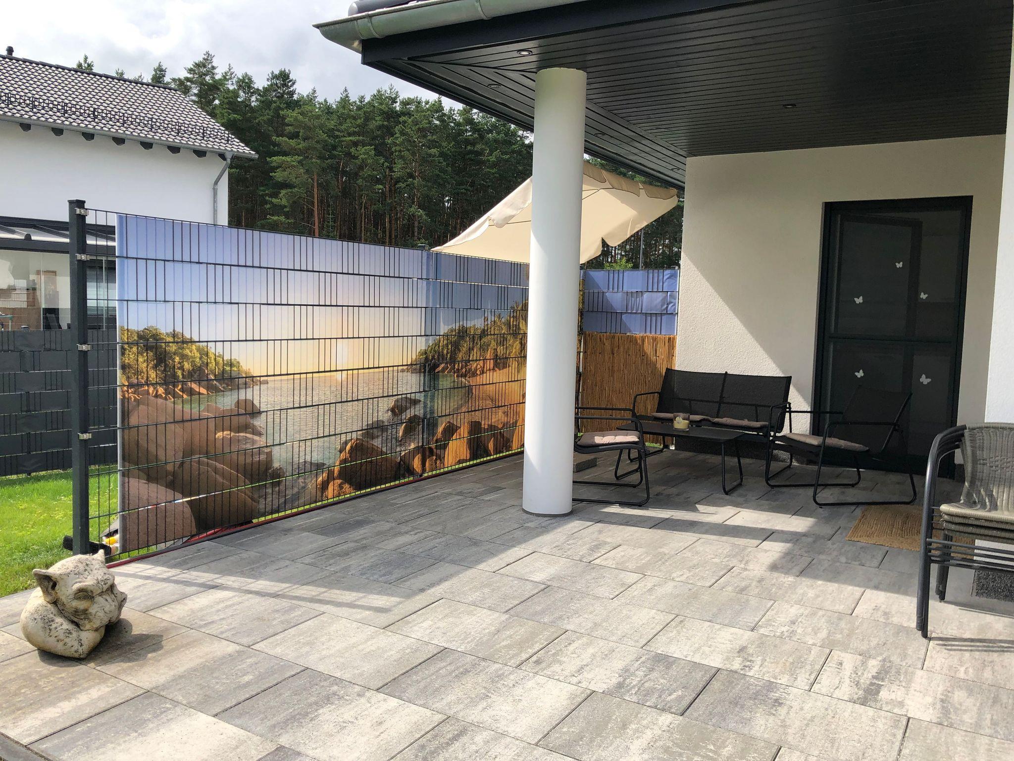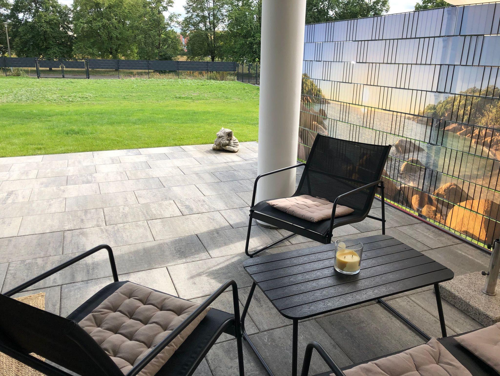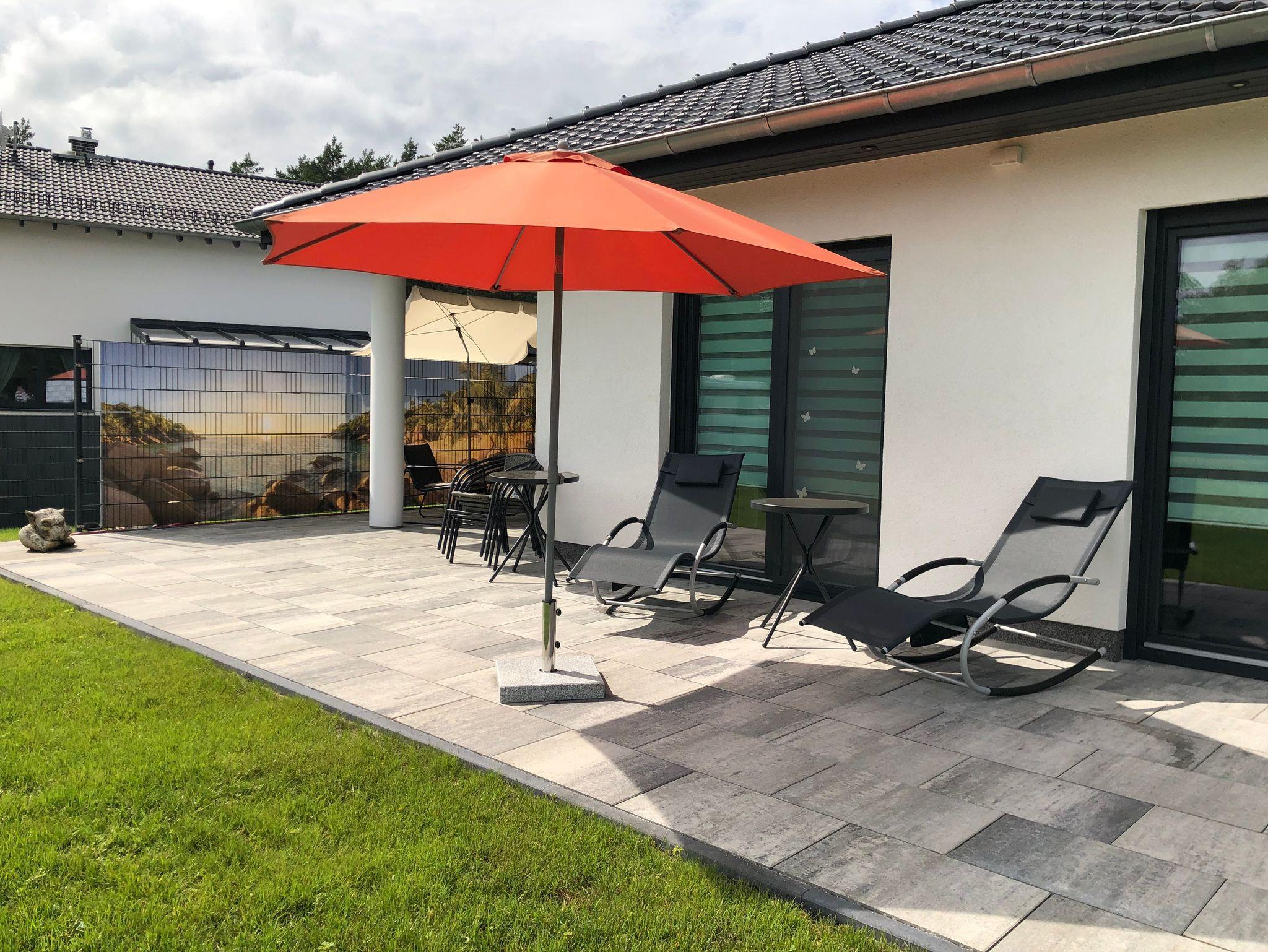 Im Außenbereich gibt es eine Terrasse, welche von zwei Seiten begehbar ist. Ein großer Gartenbereich ermöglicht Ihnen die Sonnenliegen in unterschiedlichen Bereichen aufzustellen und somit Ihren wohlverdienten Urlaub entspannt zu genießen. Das gesamte Haus verfügt über eine wunderschöne Außenbeleuchtung. Das Besondere sind die integrierten Insektenschutzgitter in jedem einzelnen Zimmer und für den Außenbereich als Schiebetüren. In der kälteren Jahreszeit sorgt eine Fußbodenheizung und ein Kaminofen für ein wohliges Wärmegefühl.