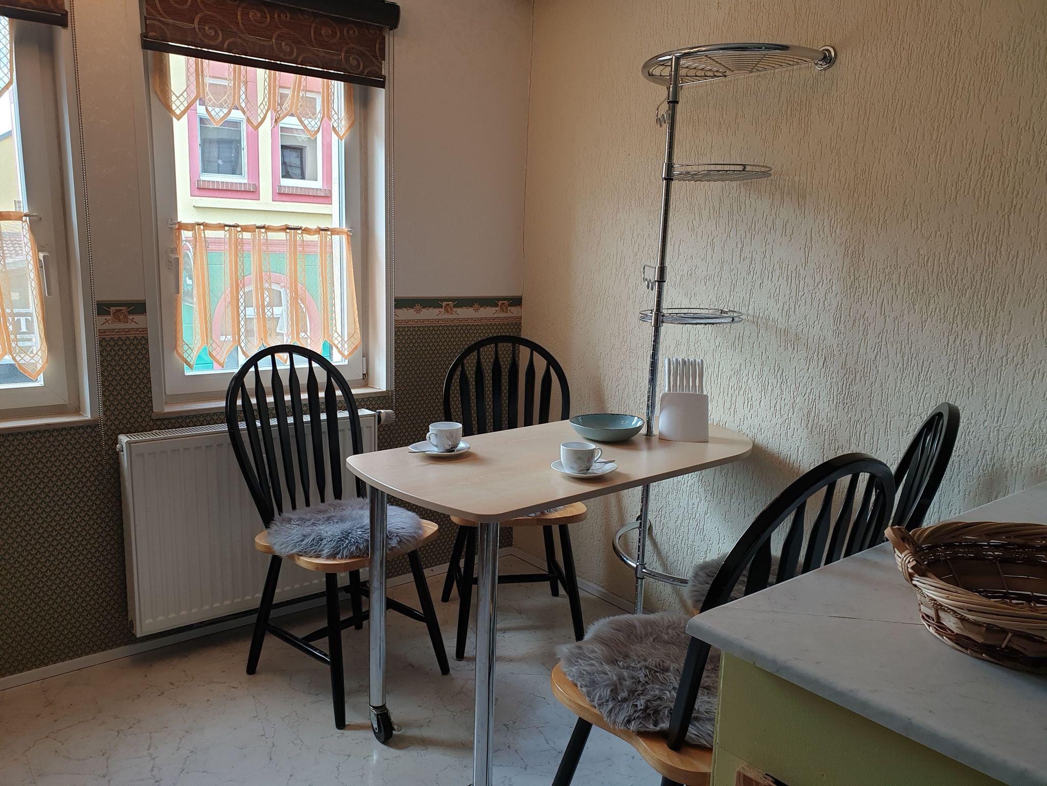 Zweigeschossiges kleines Wohnhaus mit Treppenaufgang. Untere Etage niedrige Deckenhöhe 2.20m - 2.20m. Nichtraucher-Wohnung. Rauchen im Freien möglich. 2 Schlafräume mit je 2 Einzelbetten. Laminat und Fliesen verlegt. Küche mit Spülmaschine und Mikrowelle sowie 2 Induktionsplatten. Sitzgelegenheiten in der Küche und im angrenzenden Wohnbereich. Aufbettung für Kinder möglich.