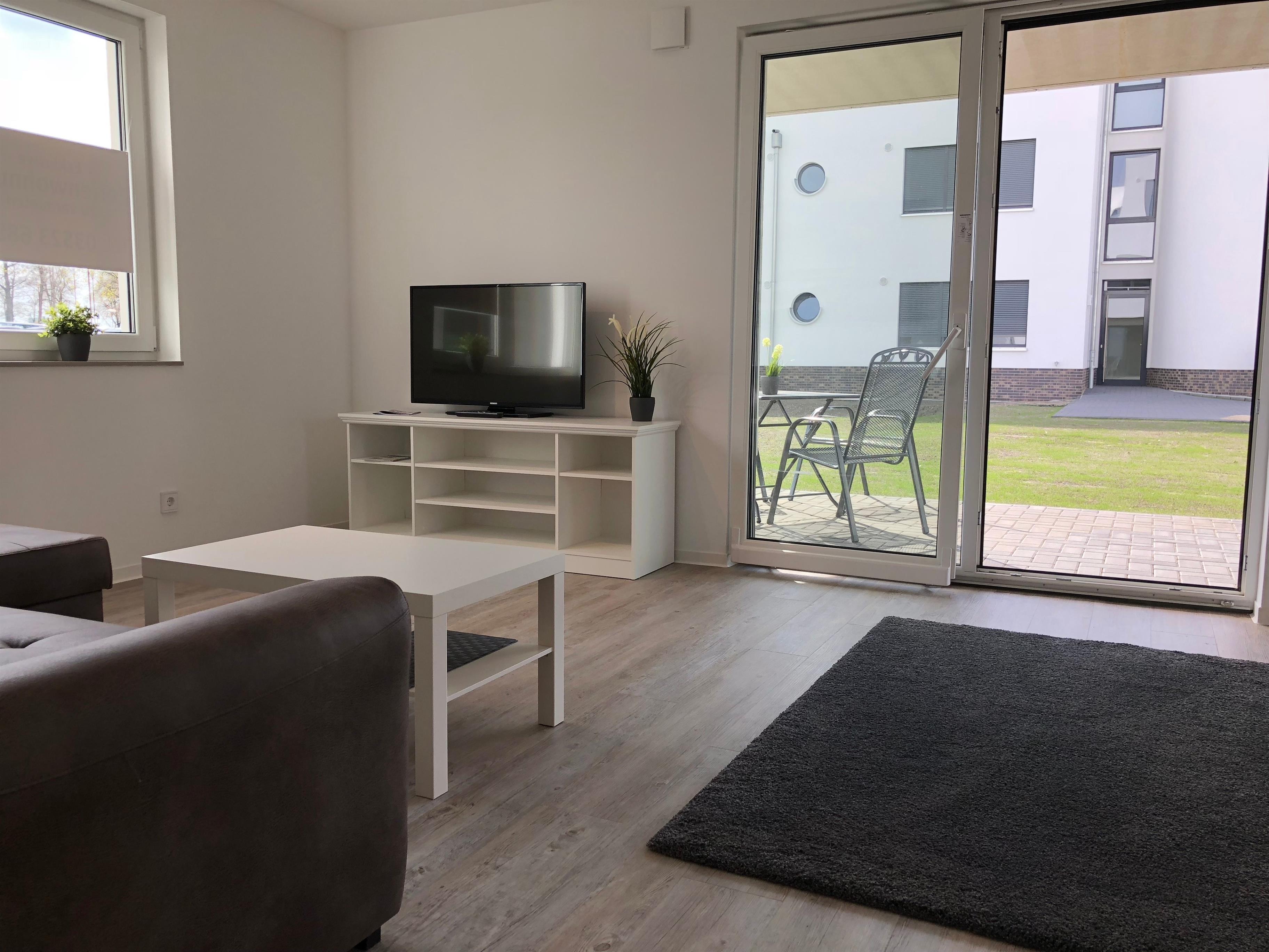 Exklusive Ferienwohnungen direkt am Großräschener See und Hafen mit Terrasse und angrenzenden Garten.