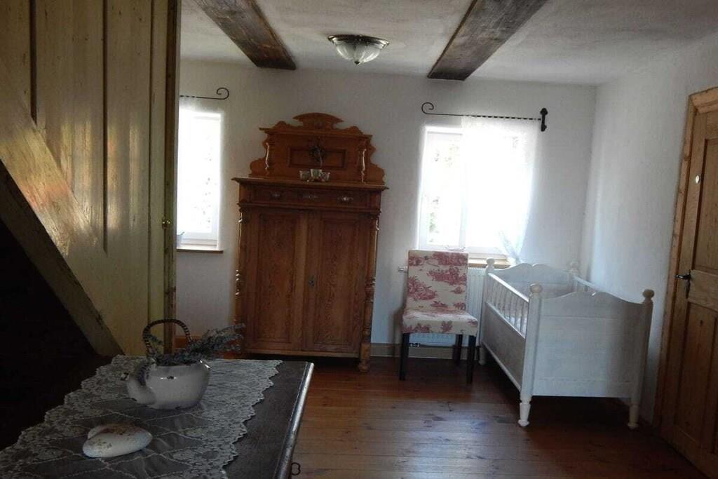 Stueetage: (spisestue(Fjernsyn, spisebord, varme), Køkken(kogeplade, ovn, køleskab, fryser), soveværelse(dobbeltseng, Fjernsyn, radio), Børneværelse(enkeltseng, barneseng), badeværelse(bruser, håndvask, toilet, Håndklæder inkl.)) , , Internetadgang, Førstehjælp, varme, terrasse(, havemøbler), have(Grill center, Græsplæne, havemøbler), strygebræt, strygejern, tørreskab,