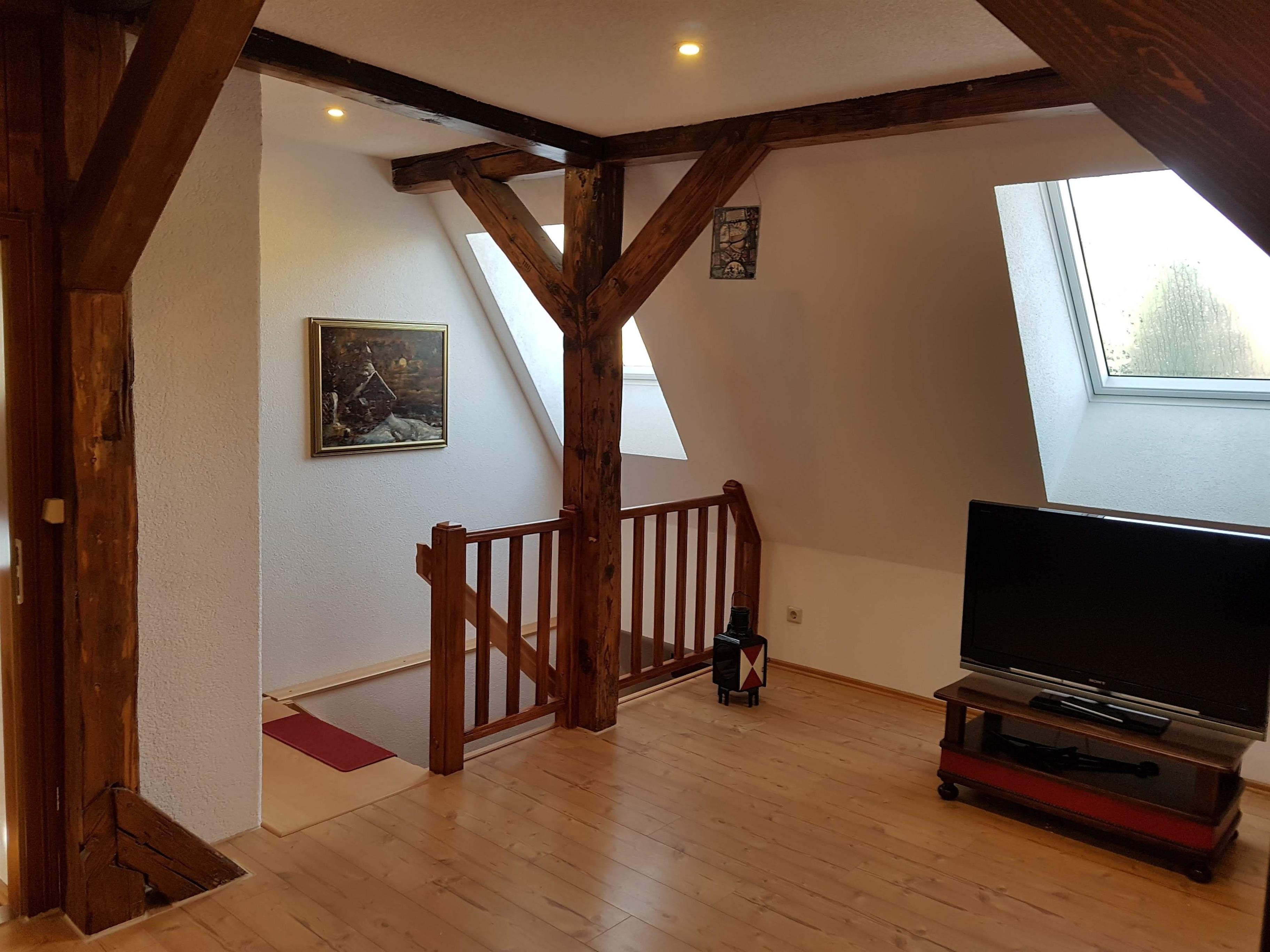 Die Ferienwohnung erstreckt sich über 2 Ebenen( 1. OG und DG).