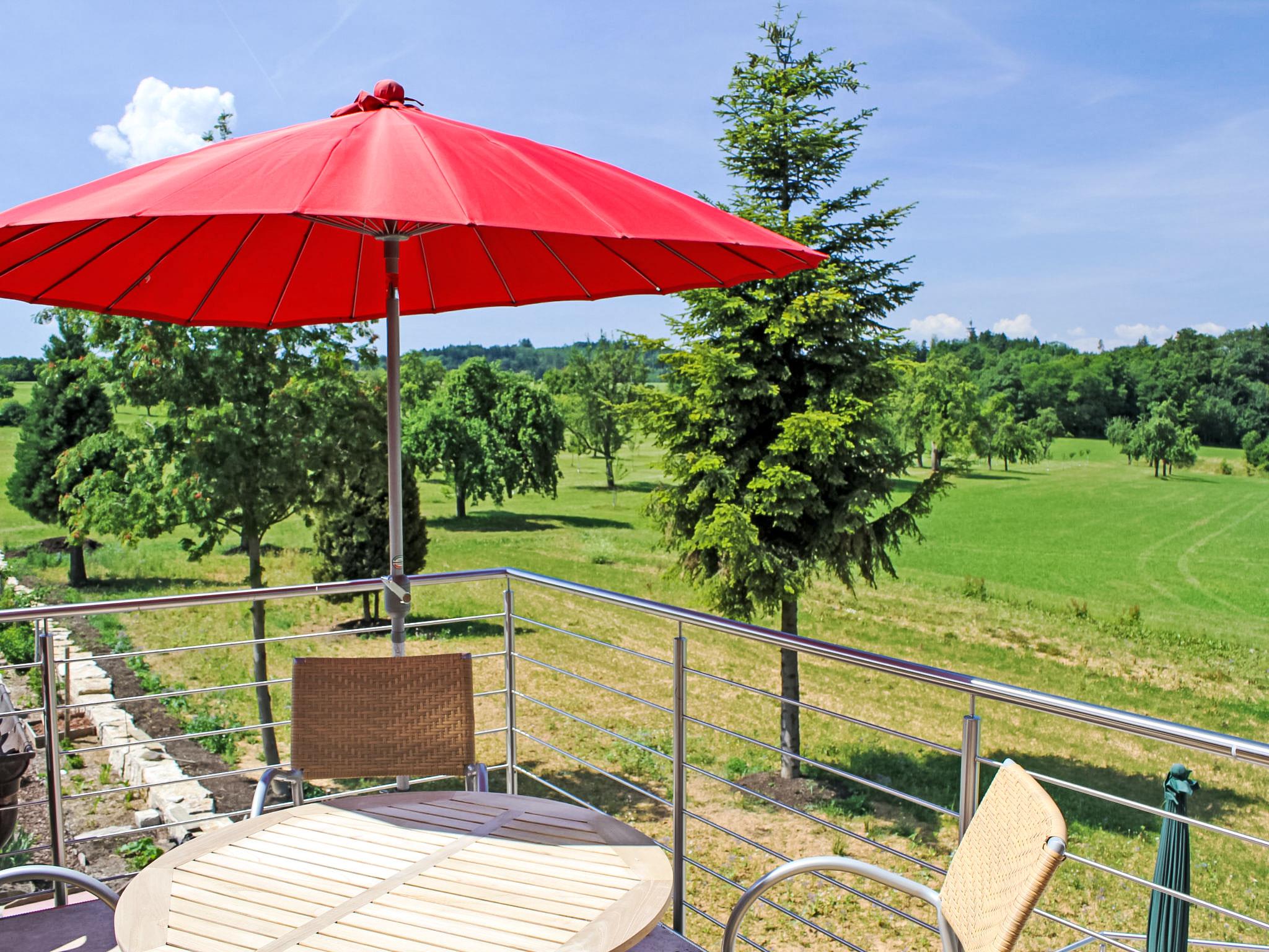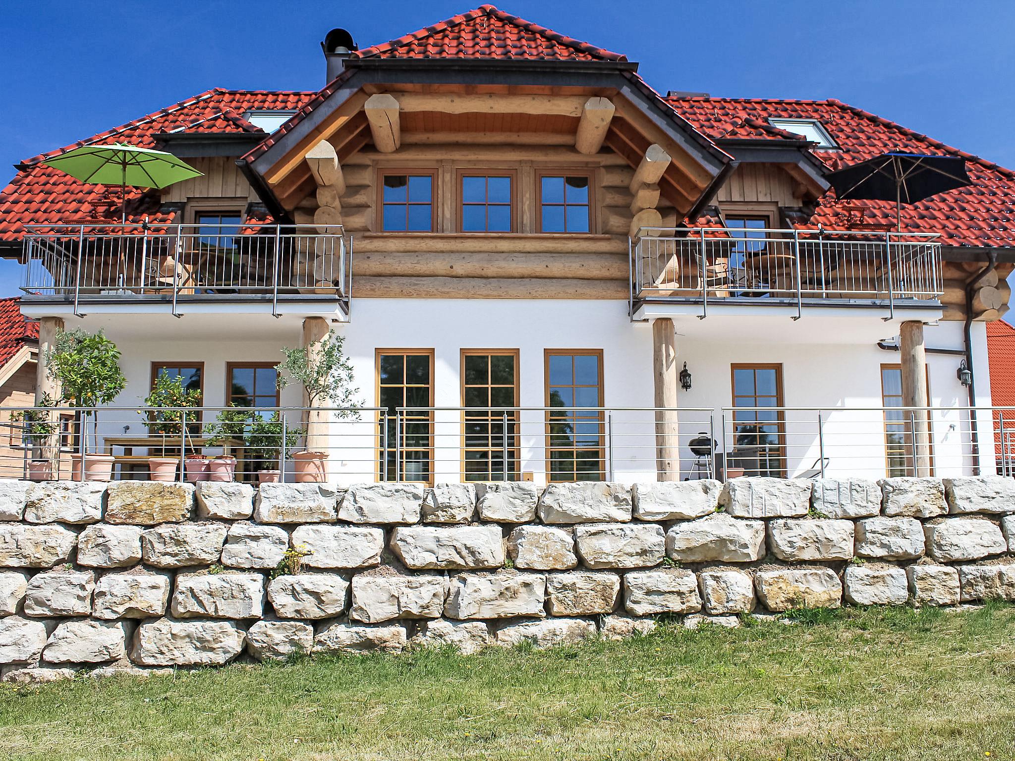 Luxurious 2-family house, surrounded by trees and meadows. In the district of Schönbronn 6 km from the centre of Grosserlach, in a quiet position, 200 m from the edge of the forest, 4 km from the lake. In the complex: sauna (extra). Washing machine (extra), tumble dryer (for shared use, extra). Parking at the house. Grocery 6 km, supermarket 10 km, restaurant 2 km, bakery 6 km, bus stop 500 m, railway station "Sulzbach an der Murr" 7 km, outdoor swimming pool 10 km, bathing lake "Starkholzbachersee" 4 km. Golf course (18 hole) 2 km, tennis 6 km, ski lift 6 km, cross country ski track 200 m, children's playground 1 km. Nearby attractions: Limesturm 2 km, Würth-Museum 20 km, Altstadt Schwäbisch-Hall 25 km. Hiking paths: Schwäbisch-Fränkischer Wald, Rottal, Fischbachtal. Washing machine and tumble dryer are in a serarate building.