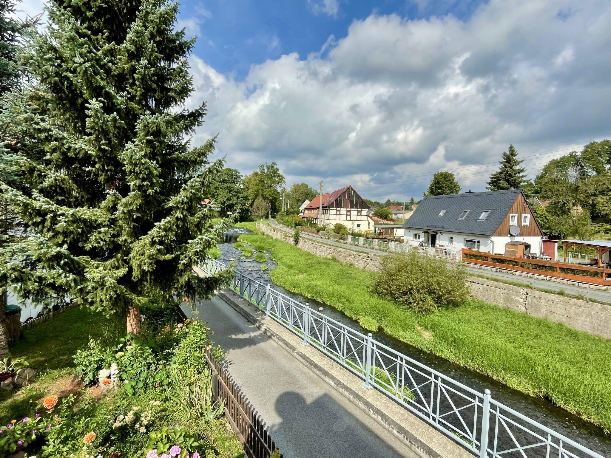 Beautiful single-family house "Sissi", built in 1790, renovated in 2021. 1 km from the centre of Großschönau, on the outskirts, 12 km from the centre of Zittau, 30 km from the centre of Löbau, 10 m from the river, in a cul-de-sac. Private: property 170 m2. Hot tub. In the house: sauna, infrared sauna. Bread roll service. Public parking on the road. Shop 1 km, grocery 1 km, restaurant 200 m, bakery 1 km, bus stop "Großschönau" 2 km, railway station "Großschönau" 2 km, outdoor swimming pool 2.5 km, bathing lake "Olbersdorfer See" 10 km. Riding stable 50 m, ski lift 4 km, ski school 4 km, cross country ski track 4 km, children's playground 1 km. The Hot tub and the sauna in the wooden barrel are on the terrace. There is also an infrared sauna and hot tub in the house.