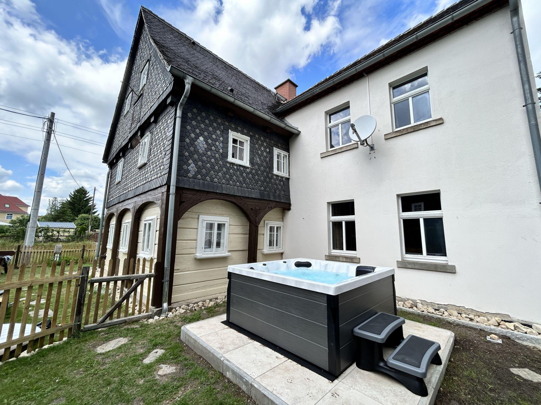 Historical 2-family house, 2 storeys, built in 1790, renovated in 2022. 500 m from the centre of Großschönau, 12 km from the centre of Zittau, 30 km from the centre of Löbau, 20 m from the river. For shared use: natural state property (fenced). Private: hot tub. Bread roll service. Shop 500 m, supermarket 200 m, restaurant 400 m, bakery 300 m, bus stop "Großschönau Weinhaus" 700 m, railway station "Großschönau Bahnhof" 1.5 km, outdoor swimming pool 1.5 km, bathing lake "Olbersdorfer See" 13 km. Walking paths from the house 5 m, ski lift 4 km, ski school 4 km, cross country ski track 4 km. Well-known ski regions can easily be reached: Waltersdorf 4 km. Well-known lakes can easily be reached: Olbersdorfer See 13 km. Please note: Additional accommodations can be booked.