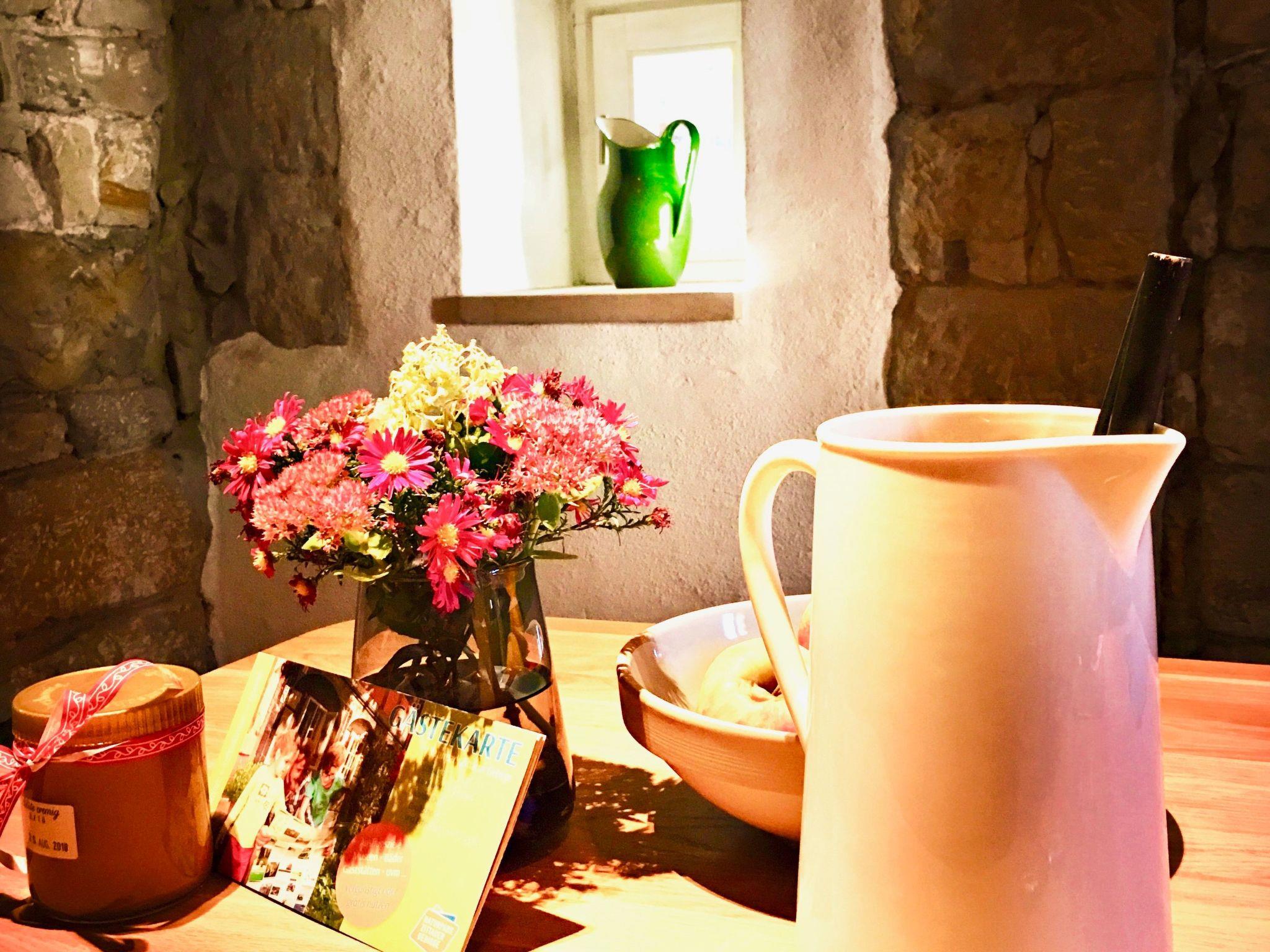 The house offers space for four to five people. On the ground floor there is a beautiful bathroom with shower suitable for the elderly, a modern kitchen and a dining room. A steep staircase leads to the upper floor, where there are two romantic bedrooms. The original parlour invites you to spend cosy hours in a pleasant atmosphere. You will feel the history in every room without having to forego the comforts of our time.