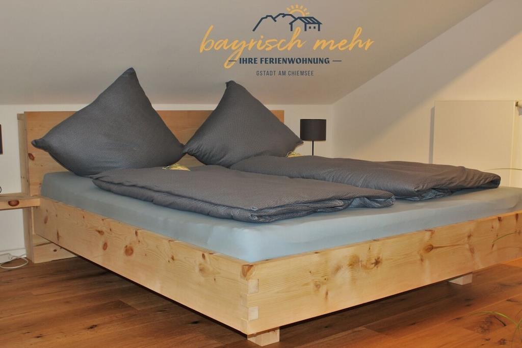 Ny ferielejlighed - totalrenoveret i 2021! Den rummelige ferielejlighed på 85 m² har en stue, køkken med spiseplads, to soveværelser og et badeværelse. Der er også en sydvendt balkon med udsigt over søen, hvor I kan nyde morgensolen. Stuen vender ud mod søen og har direkte adgang til balkonen. En stor sofa med fladskærms-tv inviterer jer til at slappe af. Vores køkken er fuldt udstyret. Spiseområdet i køkkenet tilbyder plads nok til hele familien. Derfra kan I se vores lokale bjerg, Kampenwand. I overnatter i vores to soveværelser i en seng af schweizisk fyrretræ. Vi tilbyder gerne en ekstra seng til børn efter anmodning. Det rummelige og moderne badeværelse har badekar og regnbruser.