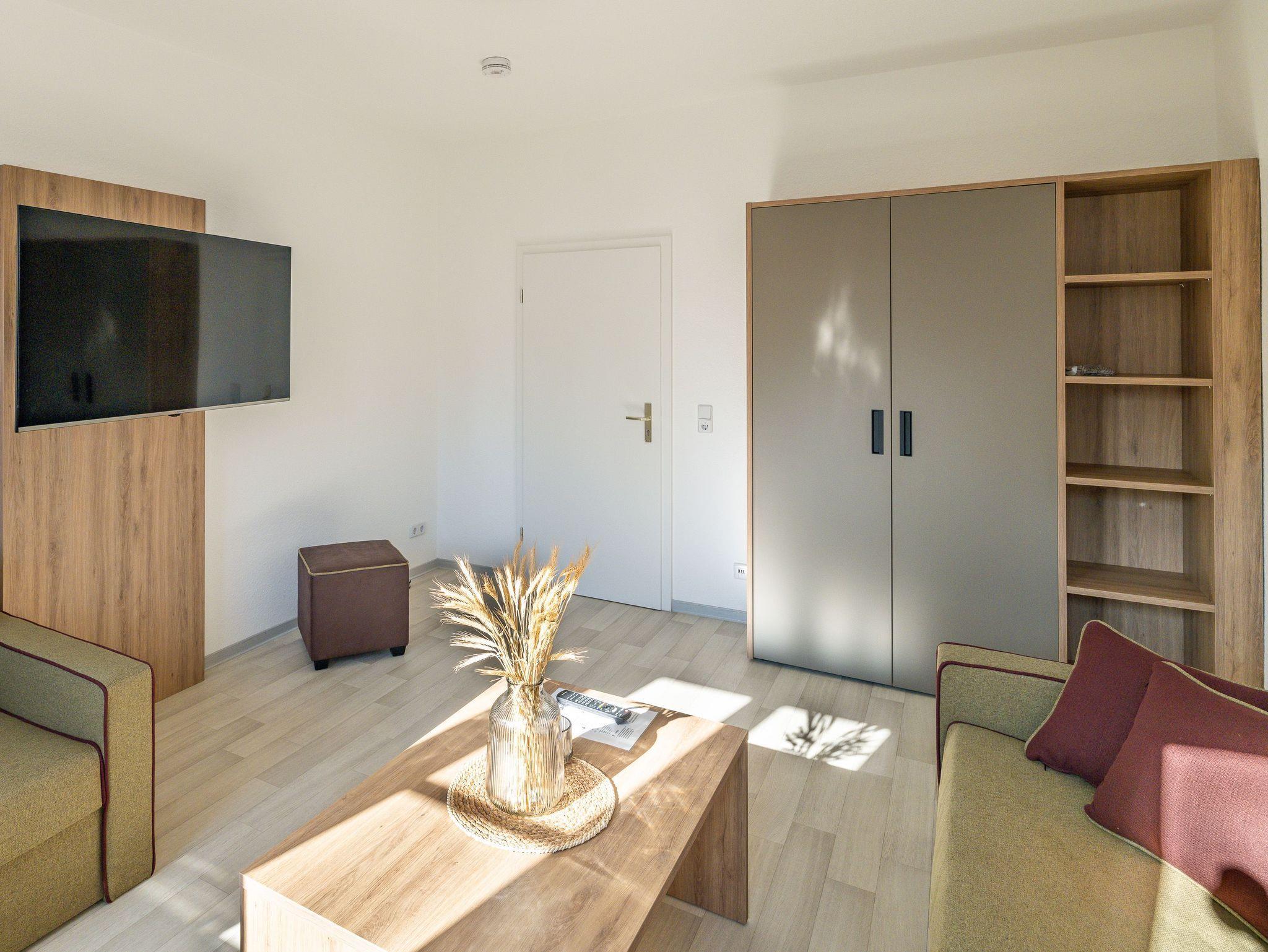 60m² Nichtraucherwohnung, moderne Einrichtung, Bad mit Dusche, Einbauküche, 1 Doppelbett, 1 Einzelbett, Schlafsofa, für max. 5 Personen