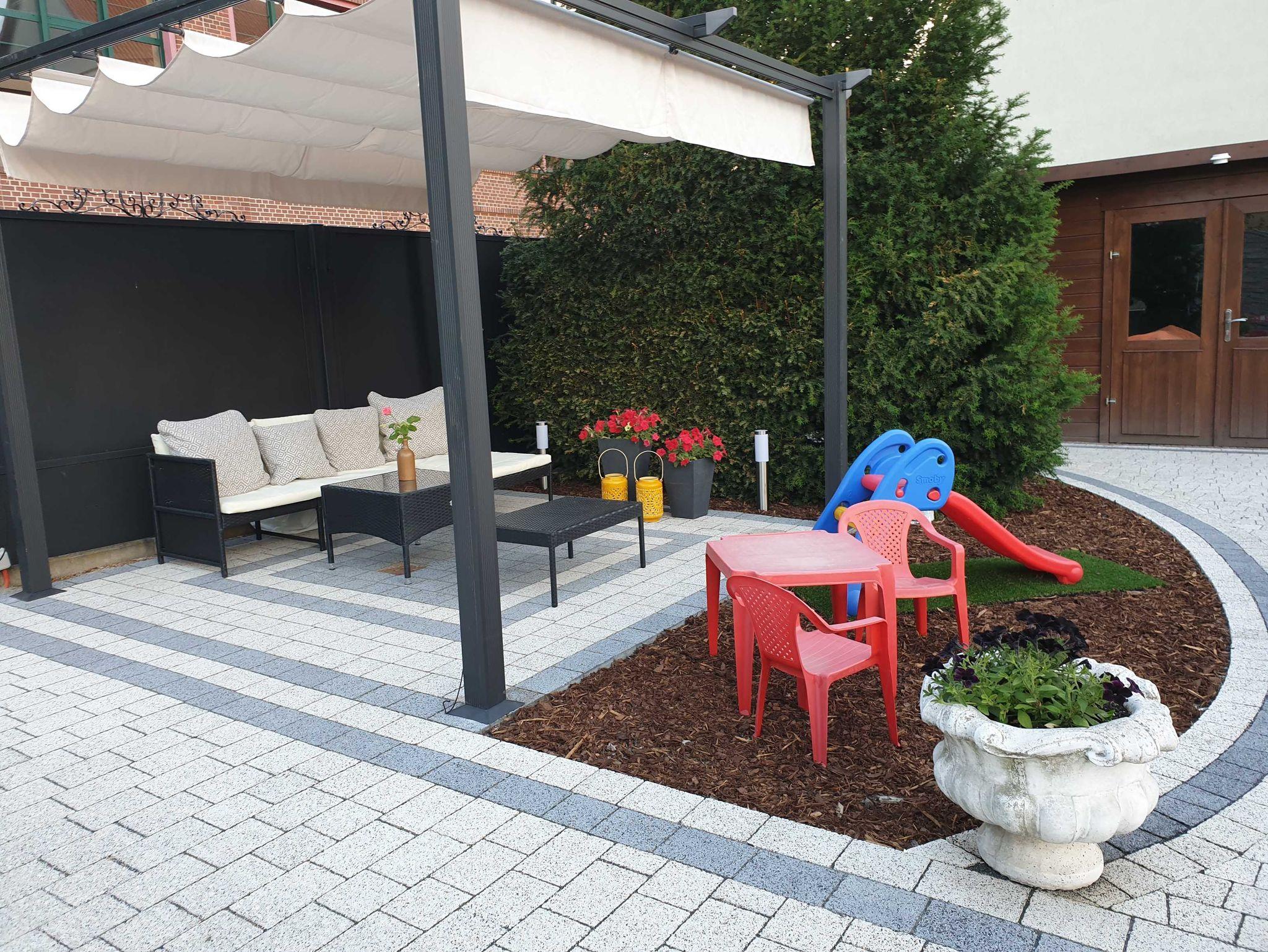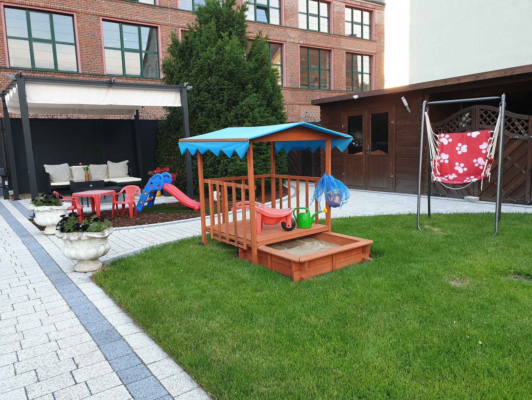 Für unsere kleinen Gäste bietet unsere familienfreundlichen Unterkunft: Hauck-Babybett mit Matratze, Hochstuhl, Kindertoilettensitz, Waschbeckentritt, Wickekunterlage, Kaputzenhandtücher, bei Bedarf Baby-Kosmetikartikel, Kinder-/Babygeschirr und Besteck, Kindersteppdecke & Kissen (extra leicht), Nachtlicht, Steckdosen-Sicherung, Spielzeug, Spielplatz mit Sandkasten, Rutsche, Wippe, Klettergerüst und Spieltisch, ein neuer kompletter Kombi-Kinderwagen inkl. Autoschale kann gegen eine Gebühr ausgeliehen werden.