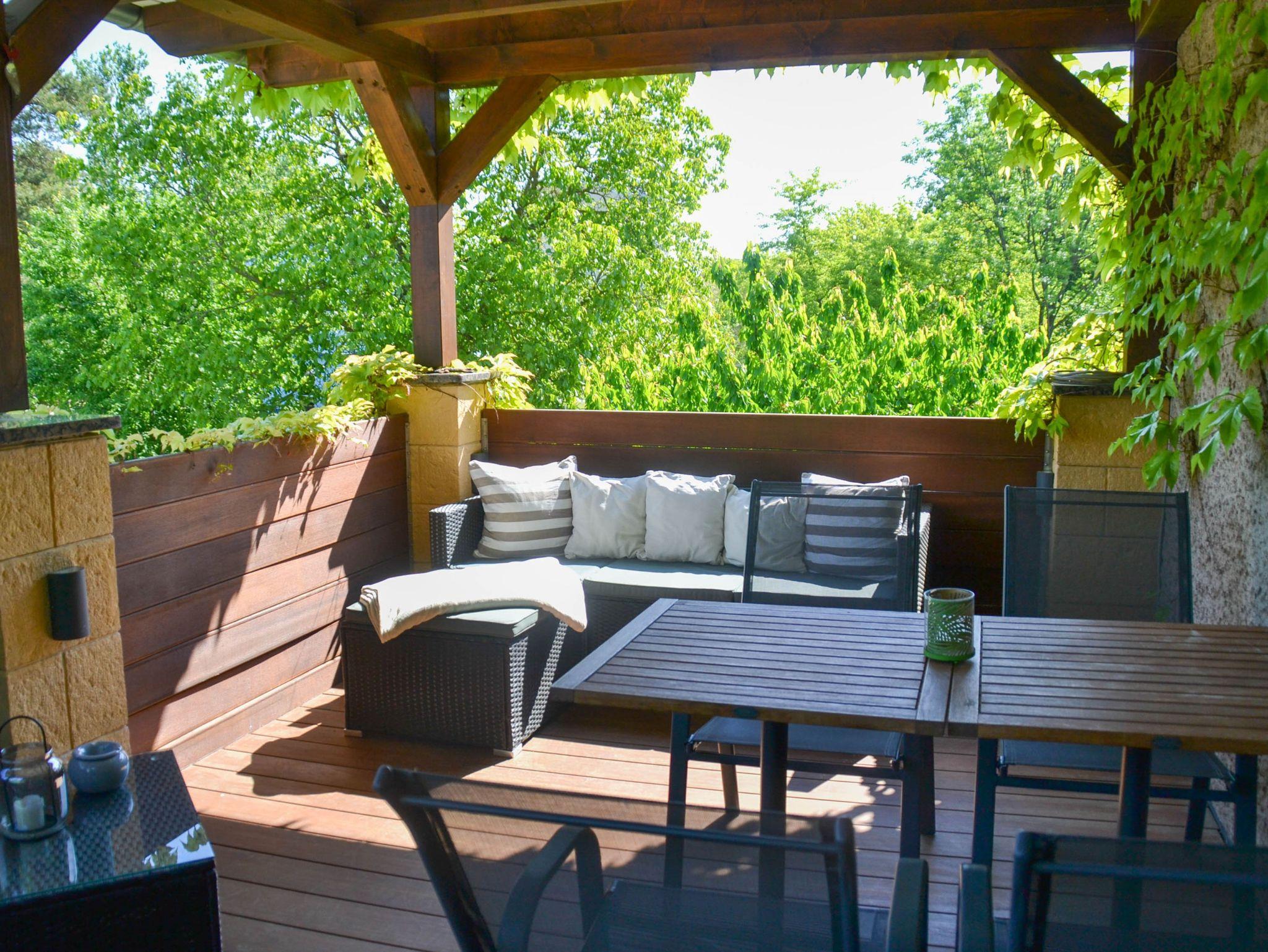 Desweiteren ist eine Sitzecke auf dm Balkon, eine Grillecke, sowie Spielgeräte für Kinder im gepflegten Garten vorhanden. Eine Fahrradunterstellmöglihkeit gibt es auch.