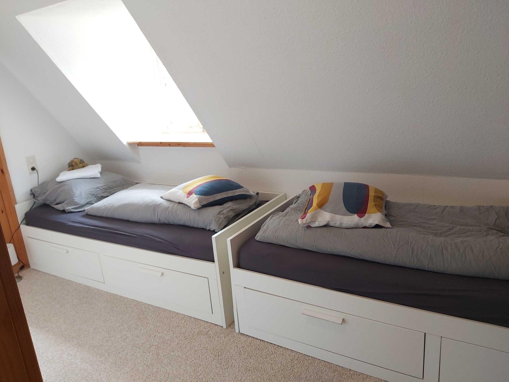 Sie Wohnen in einer ca. 100 m2 Ferienwohnung in einem typischen, denkmalgeschützten Fachwerkhaus mit 3 separaten Schlafzimmern und 4 separaten Betten. Die Wohnung befindet sich im ersten Stockwerk.