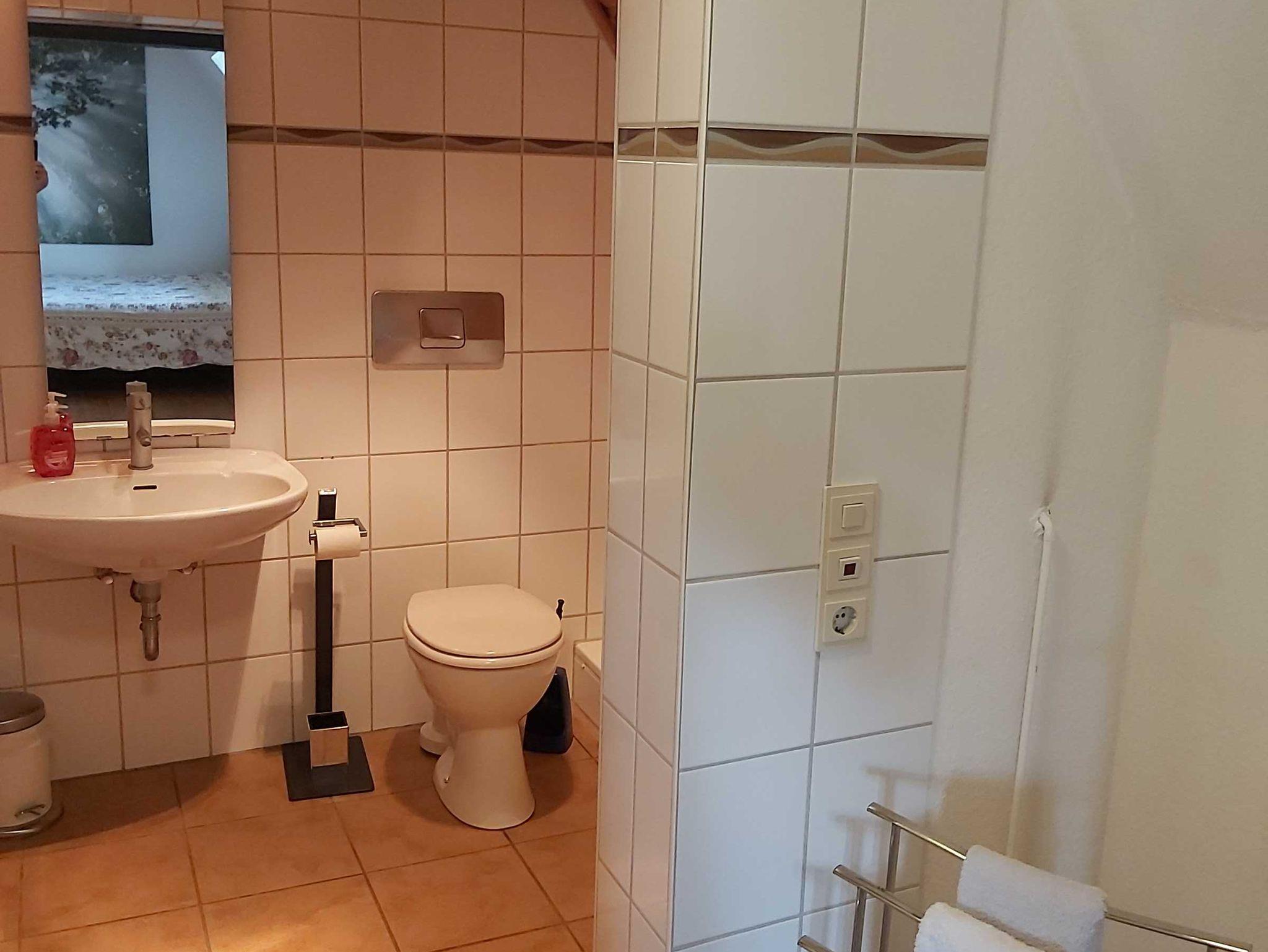 Das ca. 50m2 große Wohnzimmer ist ausgestattet mit Fachbildfernseher, großer Sitzgruppe, Kamin, Sekretär, bei Bedarf einem Doppelbett, Büchern und Spielen. Im Badezimmer stehen Ihnen Dusche und Badewanne zur Verfügung. Im Garten finden sie eine zur Ferienwohnung zugehörige Terasse umgeben. Bei der Wohnung handelt es sich um eine Nichtraucherwohnung. Das Rauchen ist lediglich im Außenbereich gestattet.
