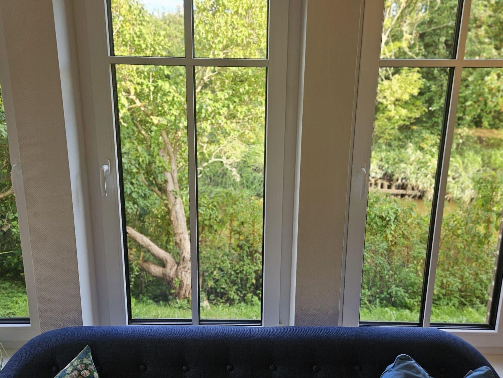 charmant mit Neuem kombiniert. Vom Sofa aus, ist das Spiel der Natur mit dem Auf und Ab der Lühe durch den Gezeitenwechsel zu beobachten. Zum Grundstück gehört ferner eine Grünfläche die zum Fluss frei und
