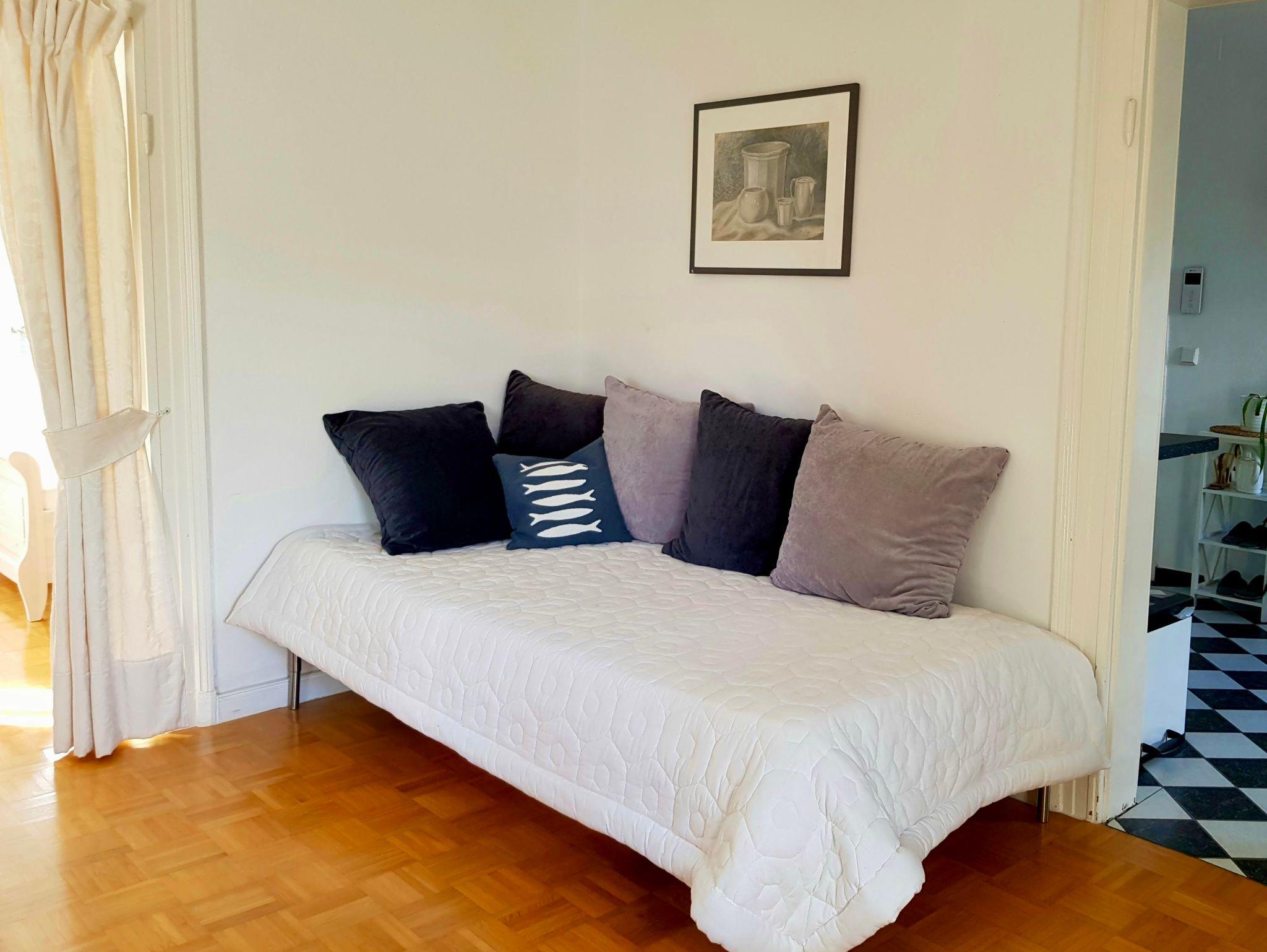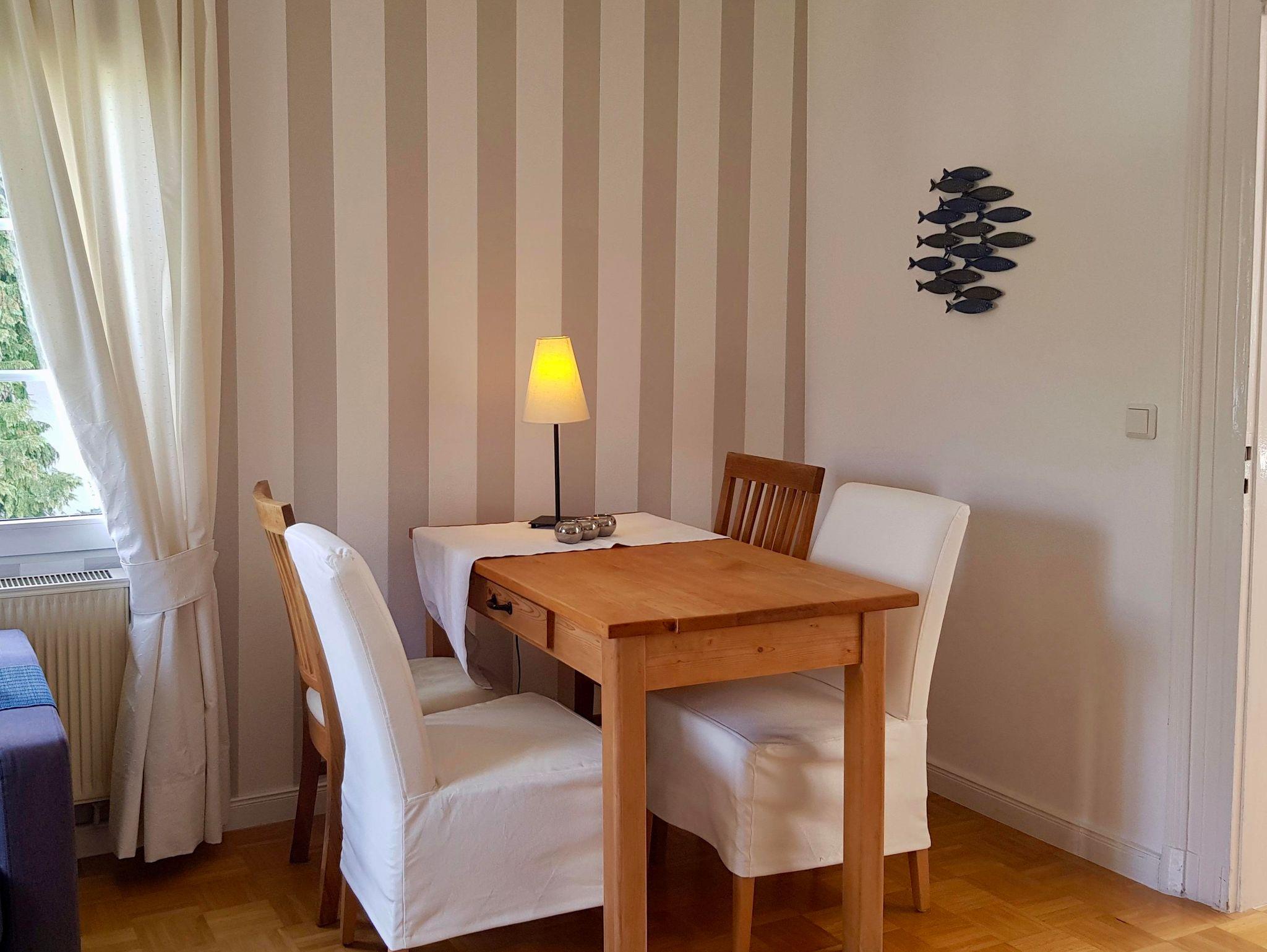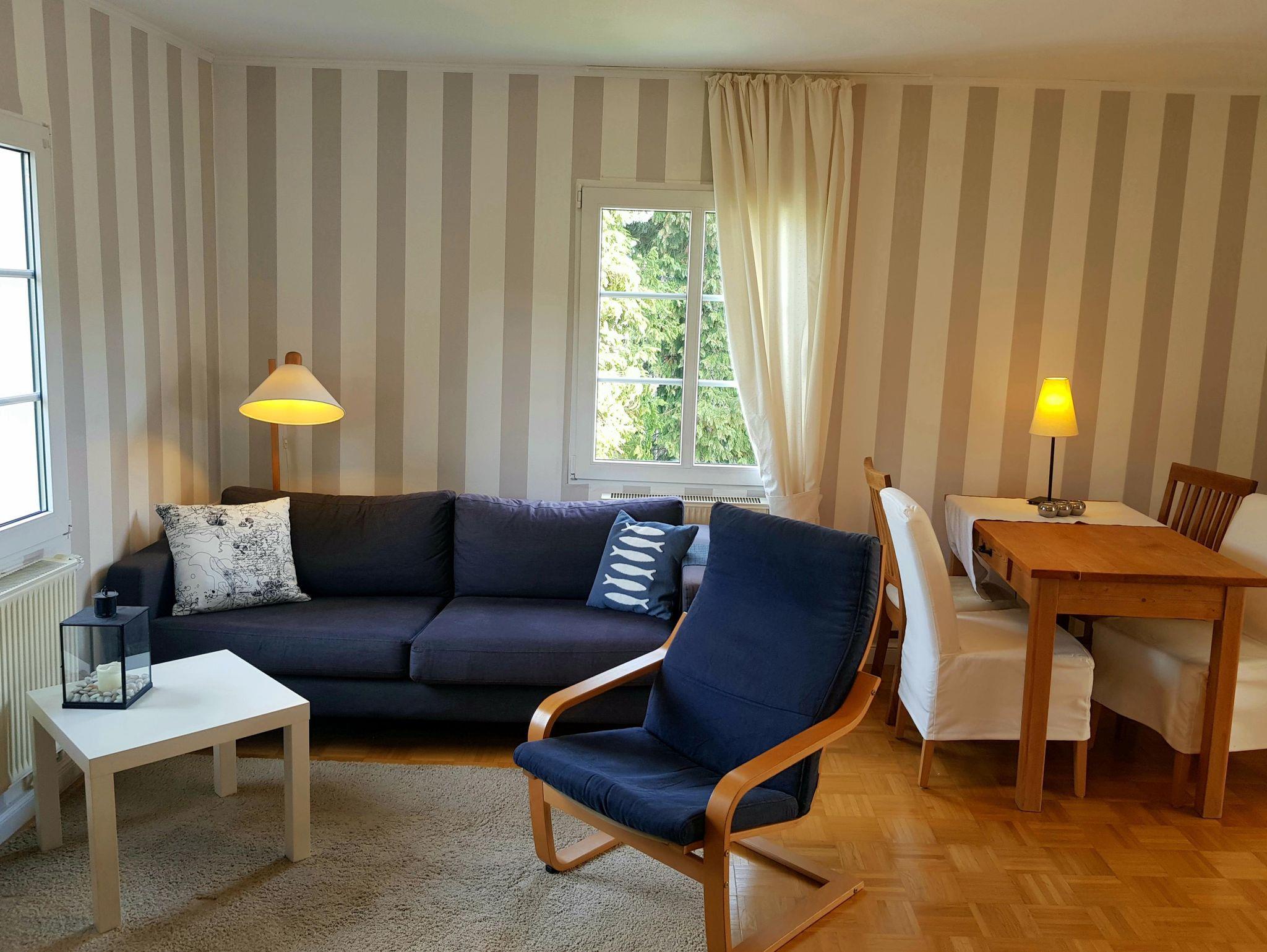 Die Ferienwohnung besteht aus einer Küche, einem Wohnzimmer mit Bett und Schlafcaoch, einem Schlafzimmer mit Doppelbett und einem Badezimmer mit Dusche und WC.