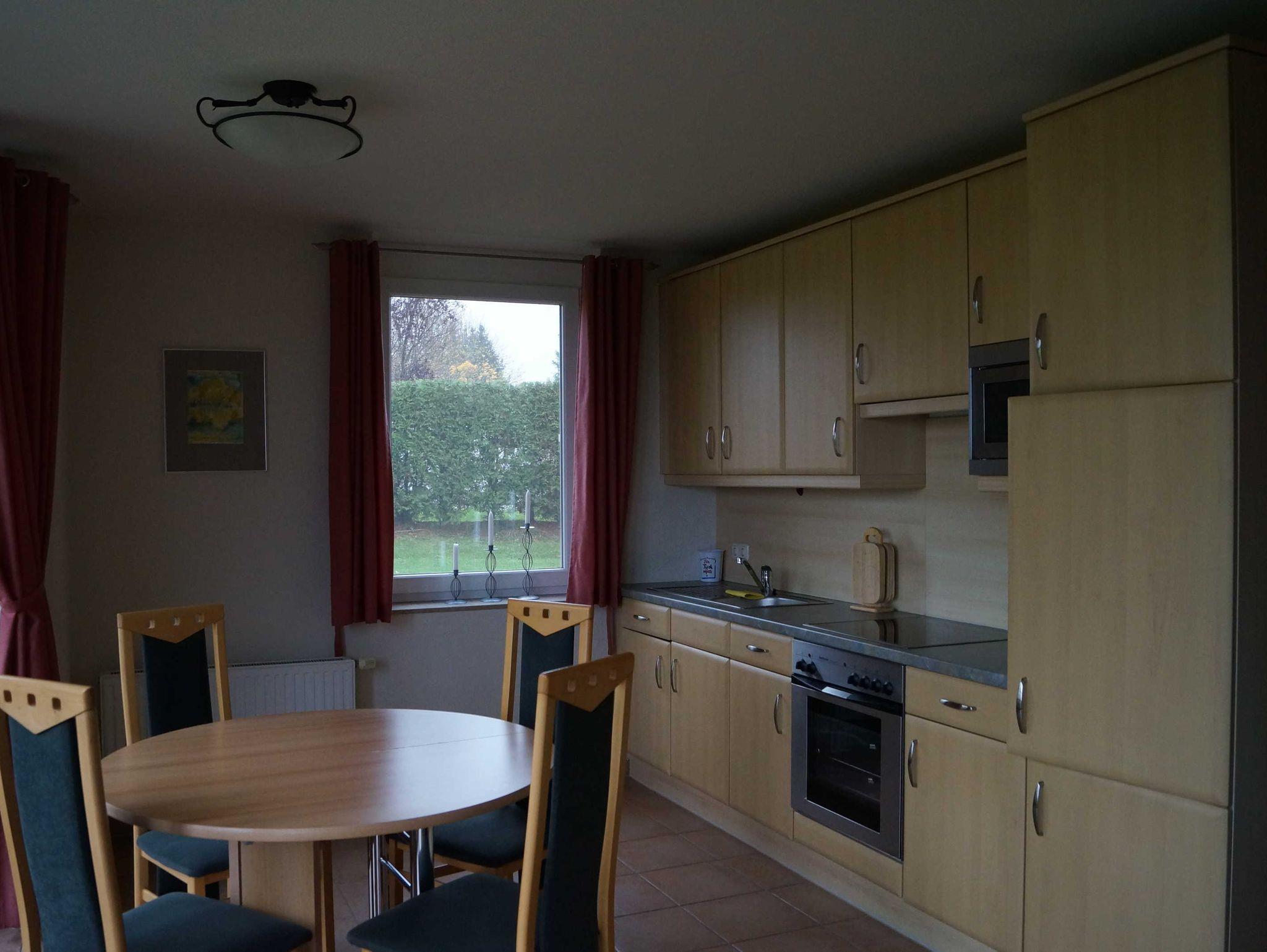 Die komplett eingerichtete Küchenzeile verfügt über Elektroherd und Backofen, Mikrowelle und Kühlschrank etc. Das Bad ist ein Duschbad mit WC. Und praktischer Weise finden Sie noch einen Abstellraum vor. Die Wohnung verfügt über eine eigene Terrasse. Die Liegewiese, der Spielplatz sowie der Grillplatz können von anderen Gästen mitbenutzt werden.