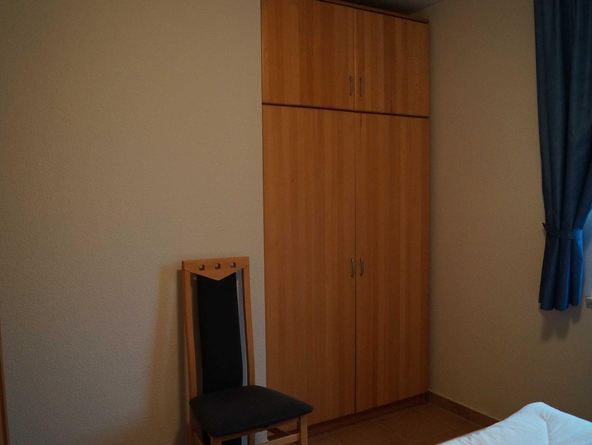 Das Wohn-Esszimmer ist sehr geräumig. Es ist mit 4 Sitzplätzen im Esszimmer sowie einer Doppelcouch und einem Einzelsessel sowie einem Wohnzimmerschrank ausgestattet. Die Couch kann als zusätzlicher Schlafplatz benutzt werden. Ein Full-HD-Fernsehgerät mit Satellitenempfang inkl. DVD und eine Mini-Stereo-Anlage sind weitere Ausstattungsmerkmale. Die Ferienwohnung verfügt über 2 Schlafzimmer, jeweils mit Doppelbett und Kleiderschrank, ein Babybett als Zustellbett ist nach Absprache verfügbar.