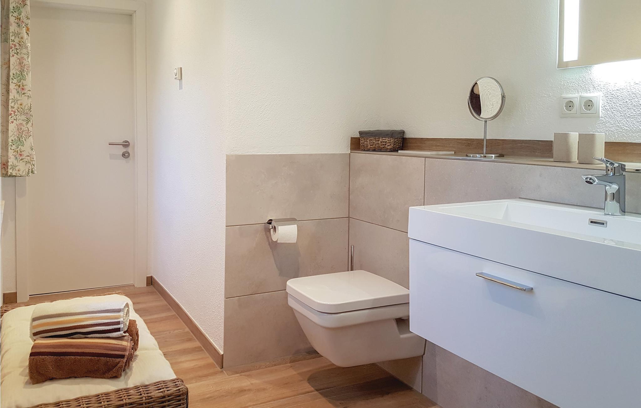 I det moderne og eksklusive badeværelse er der en "walk-in shower". Brusebadet har gulvvarme ligesom resten af badeværelset. Her er to moderne soveværelser der er indrettet med masser af træ. I det ene er en dobbeltseng med mulighed for at justere højde, i det andet soverværelse en køjeseng.