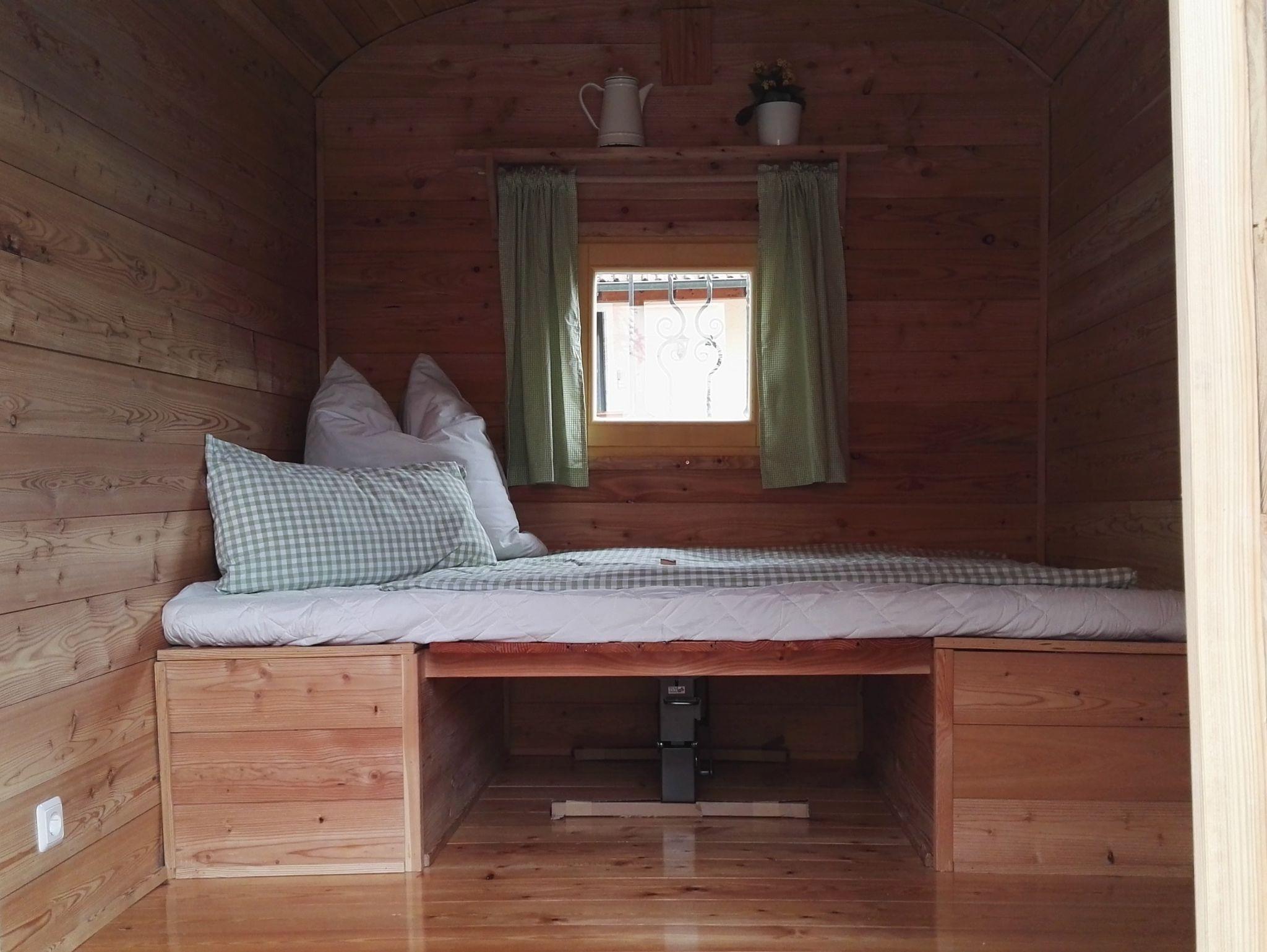 Bitte beachten Sie die Übernachtungsvarianten (Bettengrößen) im Haus Liebevoll und Bauwagen Mäxle: Das besondere Übernachten am Altmühlsee!