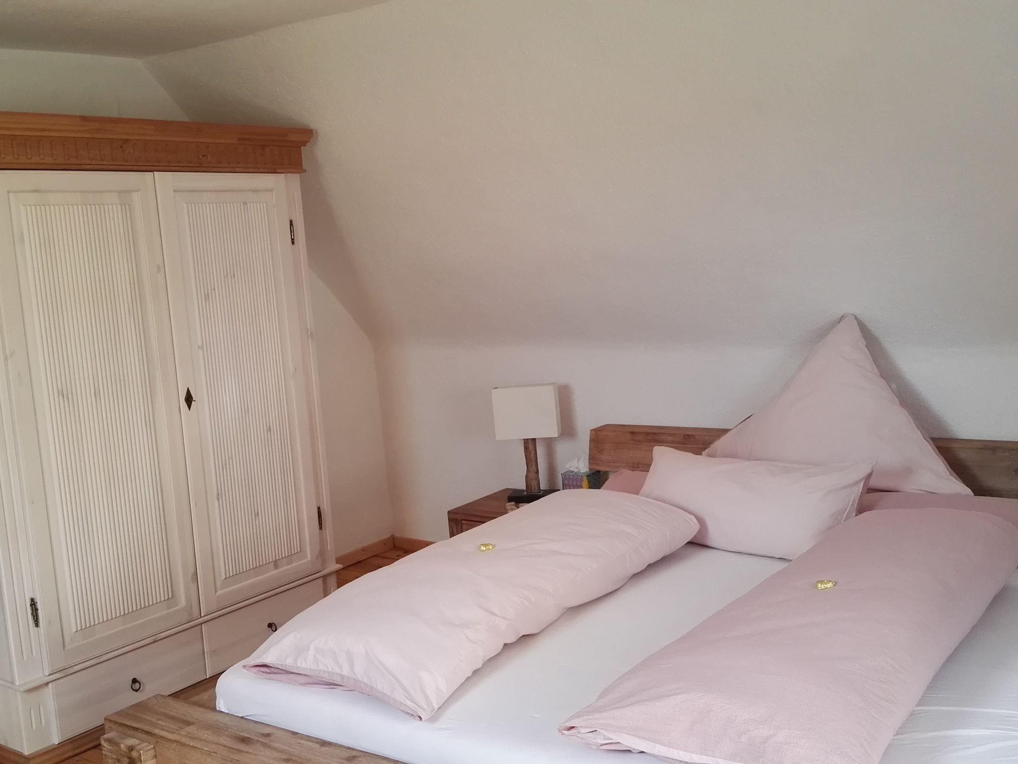 Ein weiteres großes Schlafzimmer mit großem Doppelbett befindet sich ebenfalls im Obergeschoß. Hier steht Ihnen ein großer Schrank, Sideboard für Ihre Wäsche etc. und Nachttische zur Verfügung.