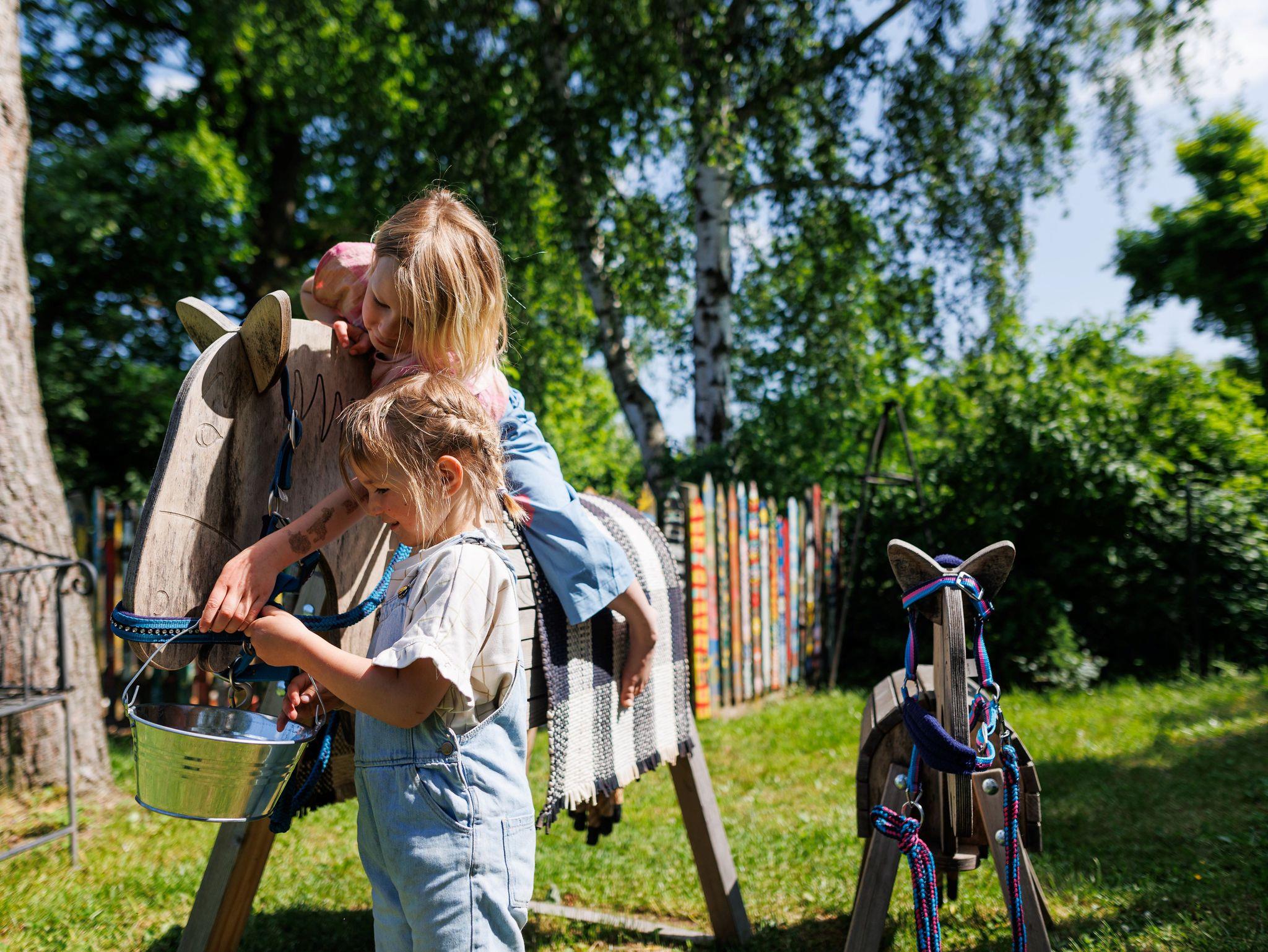 Genieße eine Tasse Kaffee unter dem Walnussbaum oder lese ein Buch in der Hollywoodschaukel. Eure Kinder gehen auf Entdeckungsreise durch den großen Garten oder probieren eines der verschiedenen Fahrzeuge aus. Sie schließen Freundschaften mit Streicheltieren, erleben Abenteuer mit anderen Kindern, kochen in der Matschküche unter dem Apfelbaum und vieles mehr. Und wenn die Sonne mal nicht scheint treffen sich alle in der Spielscheune.
