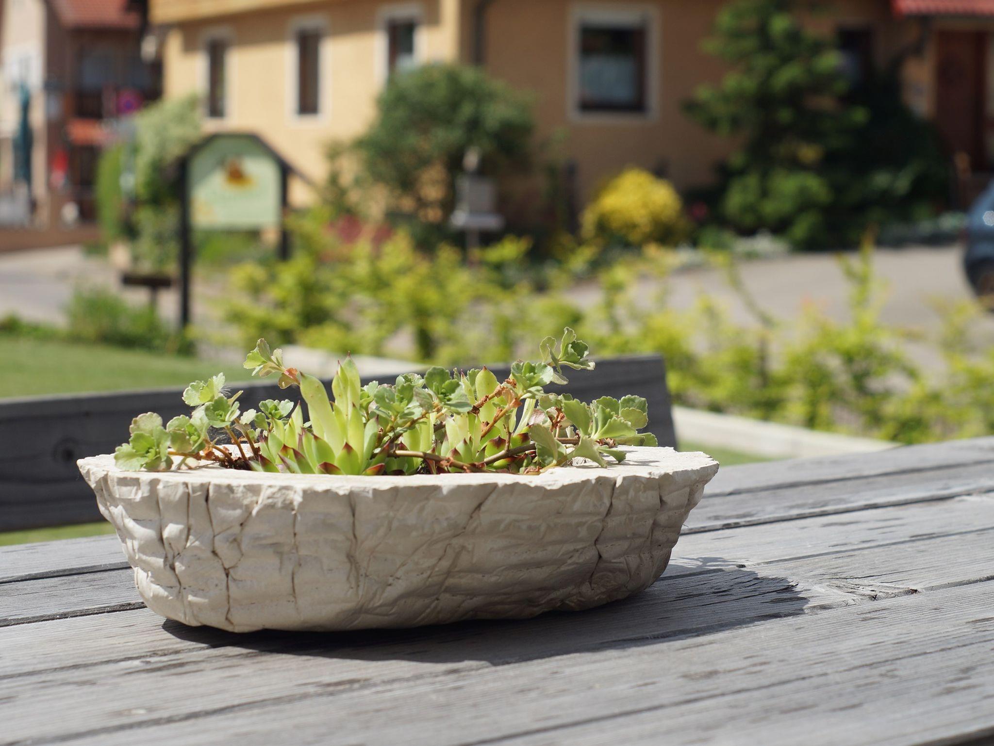 Unsere schöne Pergola im Hof bietet Schutz vor zu viel Sonne oder auch Regen.