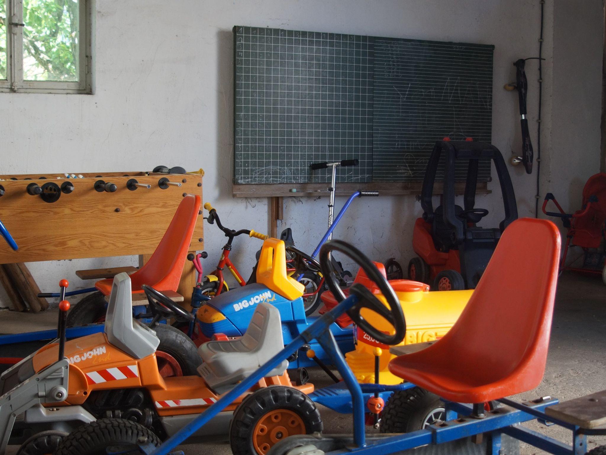 abgeschlossenen Hof und auf dem Spielplatz nach Lust und Laune toben. Verschiedene Tret-Fahrzeuge und viele Spielsachen stehen dazu bereit.
