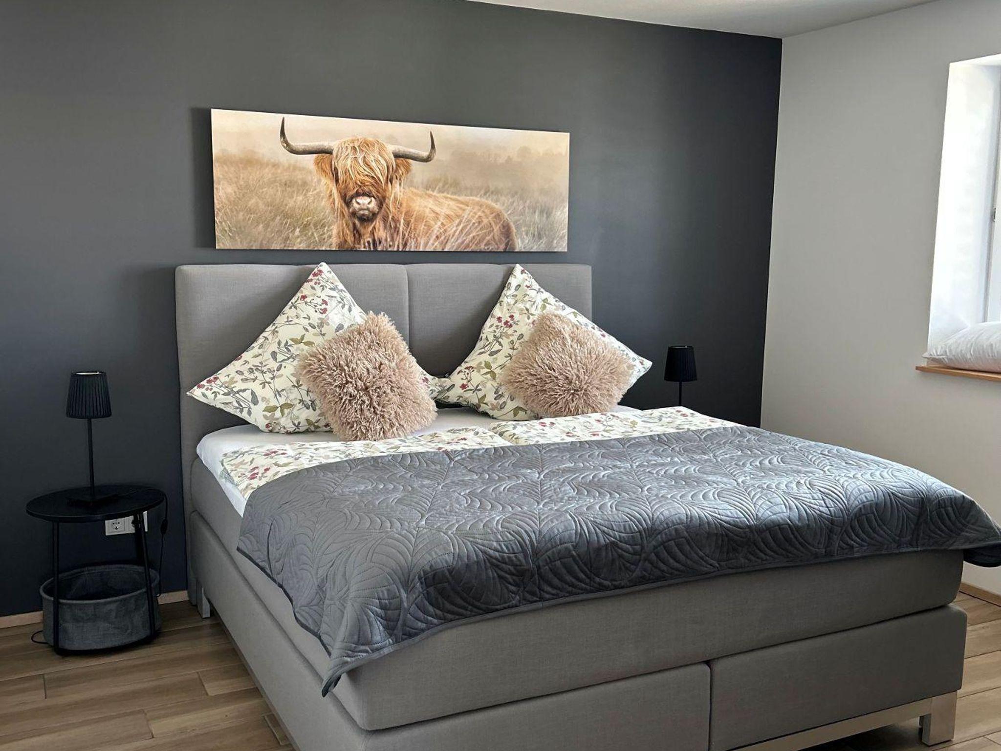 Apartement Kleines Glück, ca. 36 m2 mit Küche mit Backofen und Spülmaschine, Kühlschrank mit Gefrierfach, Toaster, Wasserkocher, Senseo Kaffeemaschine. Separater Schlafraum mit Boxspringbett. Zusätzlich ist ein Reisebett für ein Kleinkind möglich (einmalige Gebühr 20 €) Im Wohnraum zusätzliche hochwertige Schlafcouch mit Matratze vorhanden.
