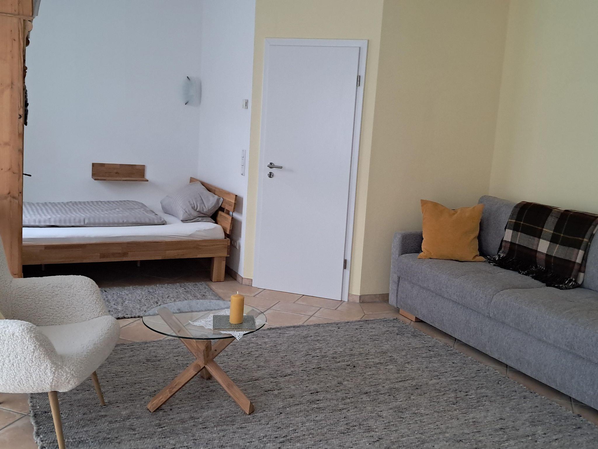 1 - 2 Personen können im Appartement wohnen. Es verfügt über ein 140 cm breites Bett sowie eine Schlafcouch.