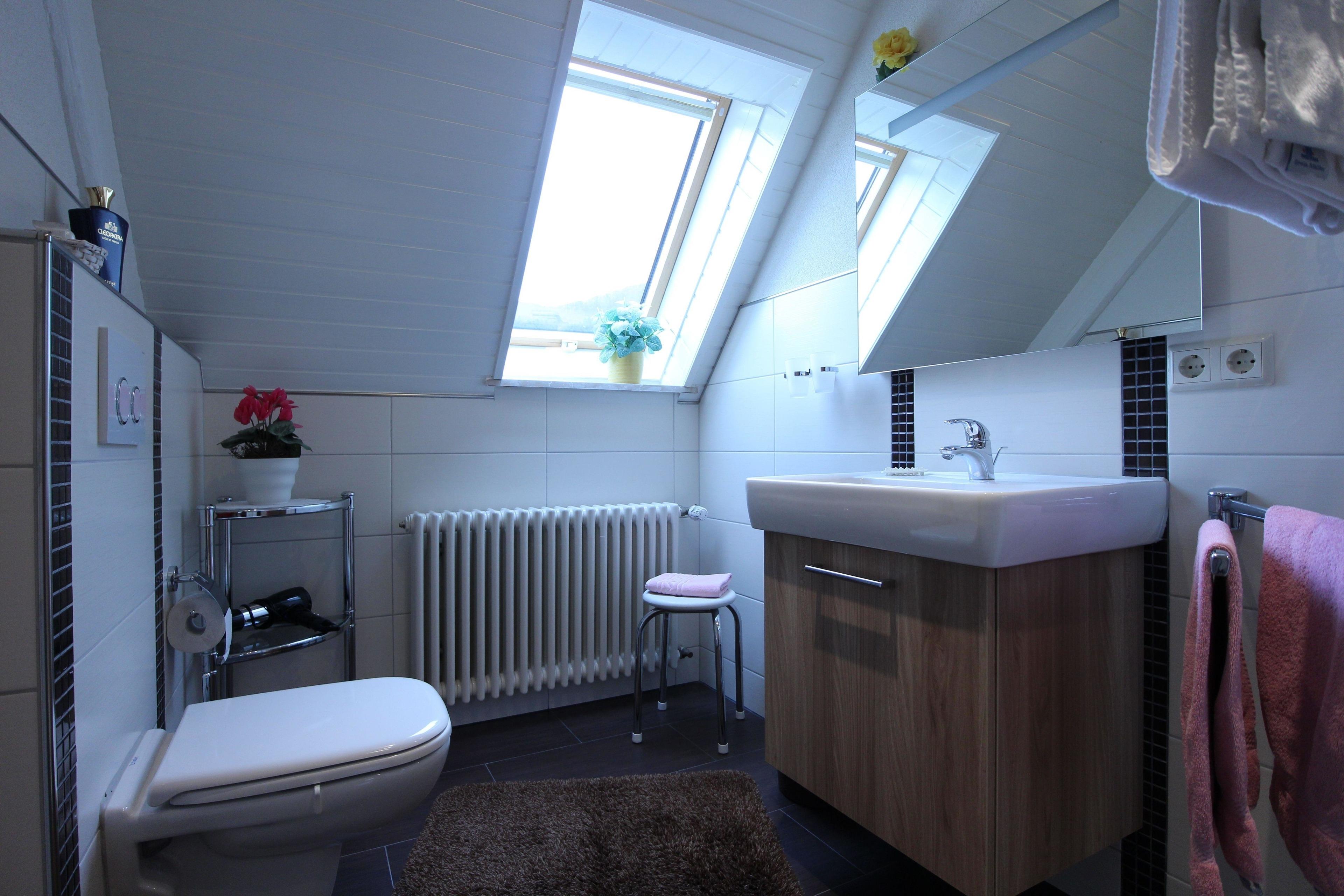 Im hellen Badezimmer mit Dusche/WC und beleuchtetem Kosmetikspiegel fühlen Sie sich morgens und abends richtig wohl. Freuen Sie sich im Schlafzimmer auf ein bequemes Doppelbett (200/200 cm) mit elektrischen Lattenrosten und Nackenstützkissen, in denen man so richtig ausschlafen kann.