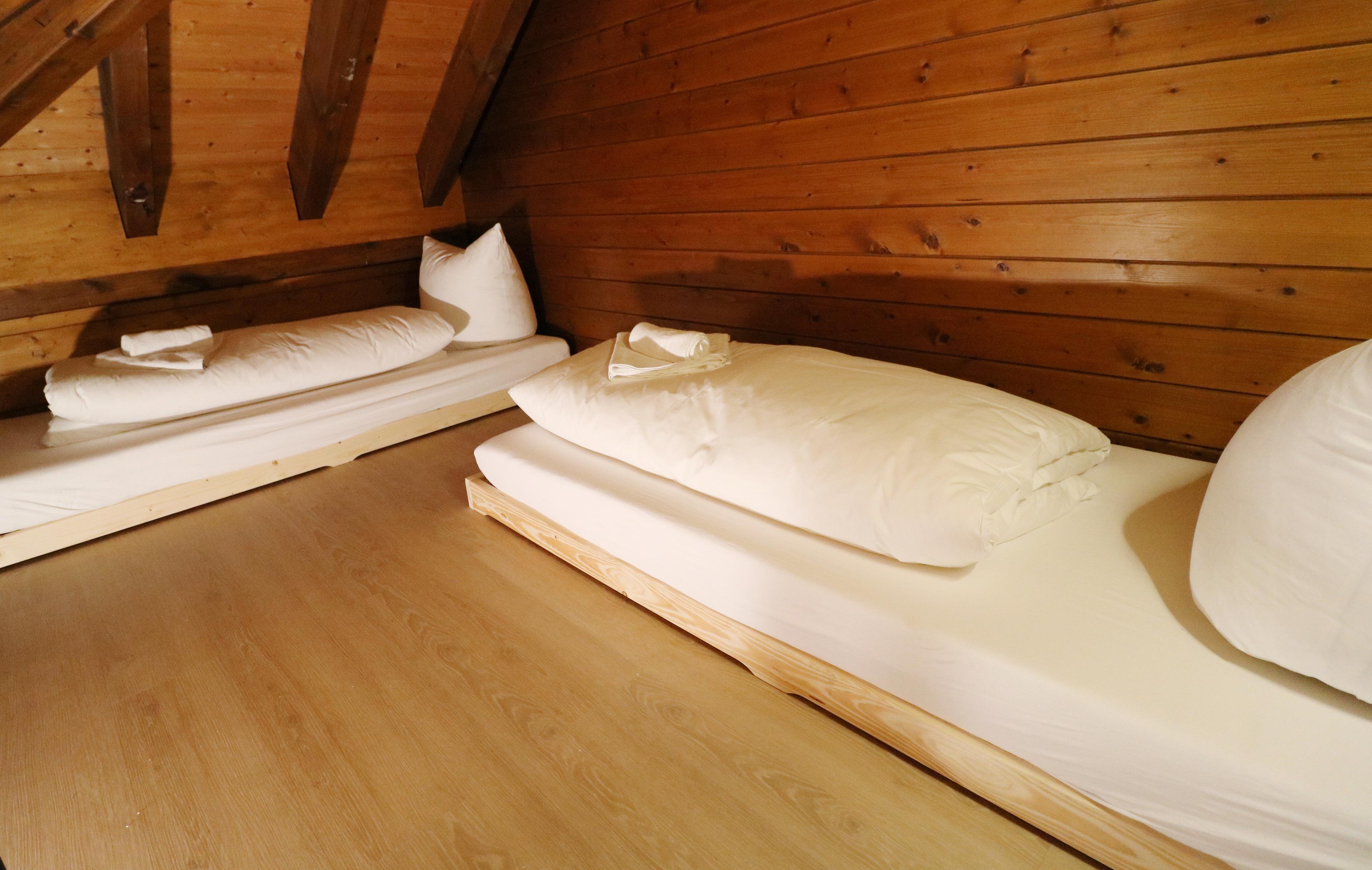 - in the attic a mattress dormitory with 2 single beds
