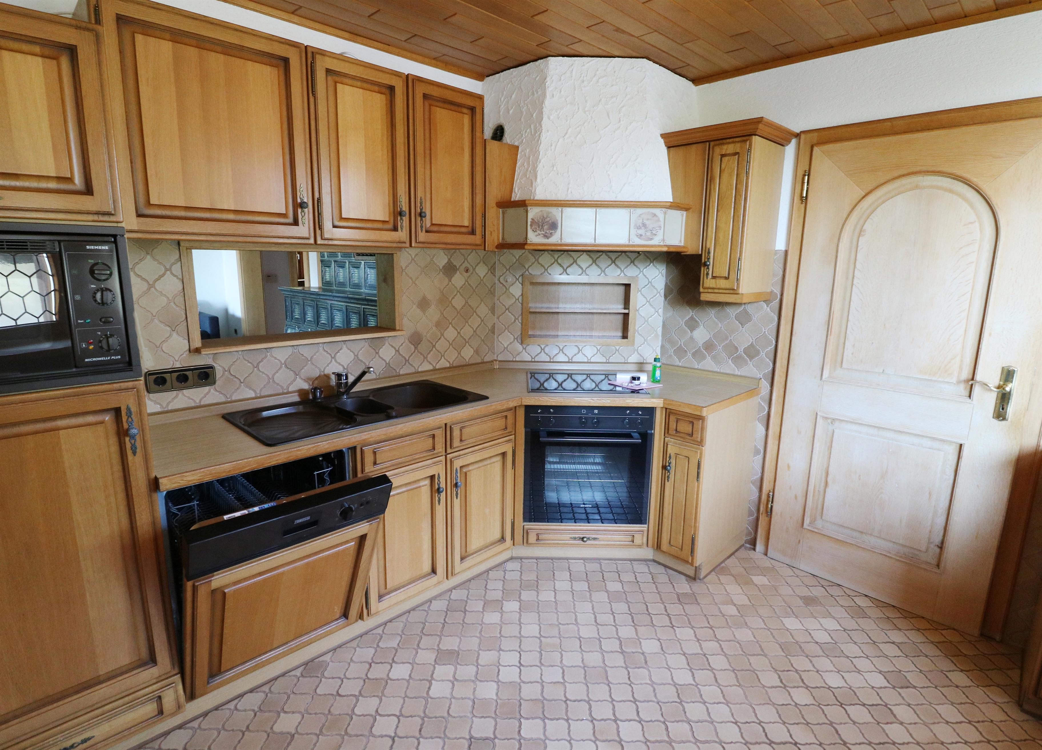 - 1 vollausgestattete Küche mit Spülmaschine, Herd mit 4 Kochfeldern, Kühlschrank mit Gefrierfach, Filterkaffeemaschine, Backofen, Toaster, Durchreiche zum Wohnzimmer
