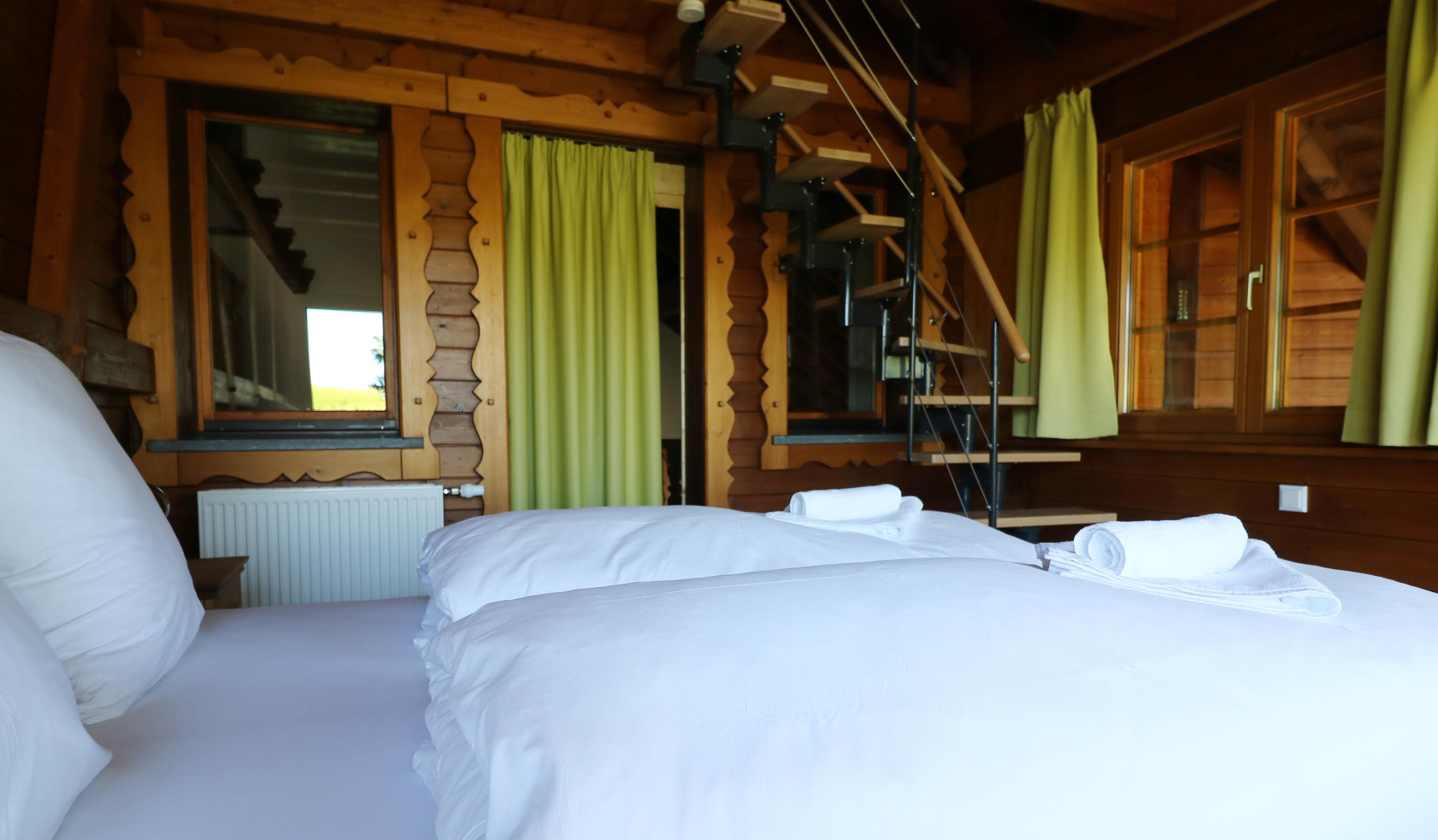 - 1 bedroom on the upper floor with double bed and balcony, access to the mattress dormitory