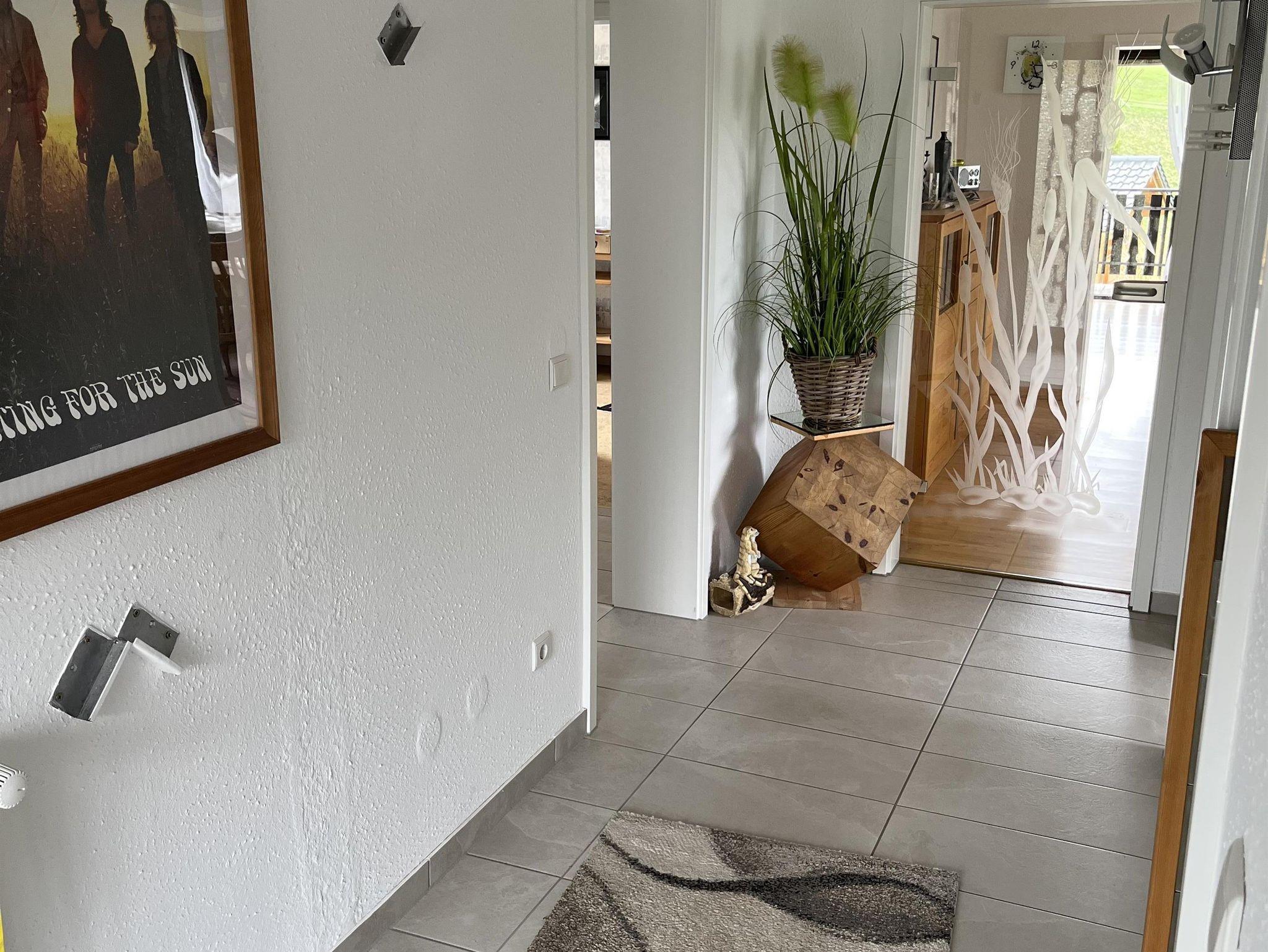 Wenn Sie das Haus betreten, gelangen Sie zunächst in den Flur mit Garderobe und Gäste WC. Von dort aus mkommen Sie links ins Bad und die beiden Schlafräume und rechts in die Küche. Gerade aus durch eine Glastür in das Esszimmer und danach direkt ins große Wohnzimmer mit Fernseher und Balkon Zugang.