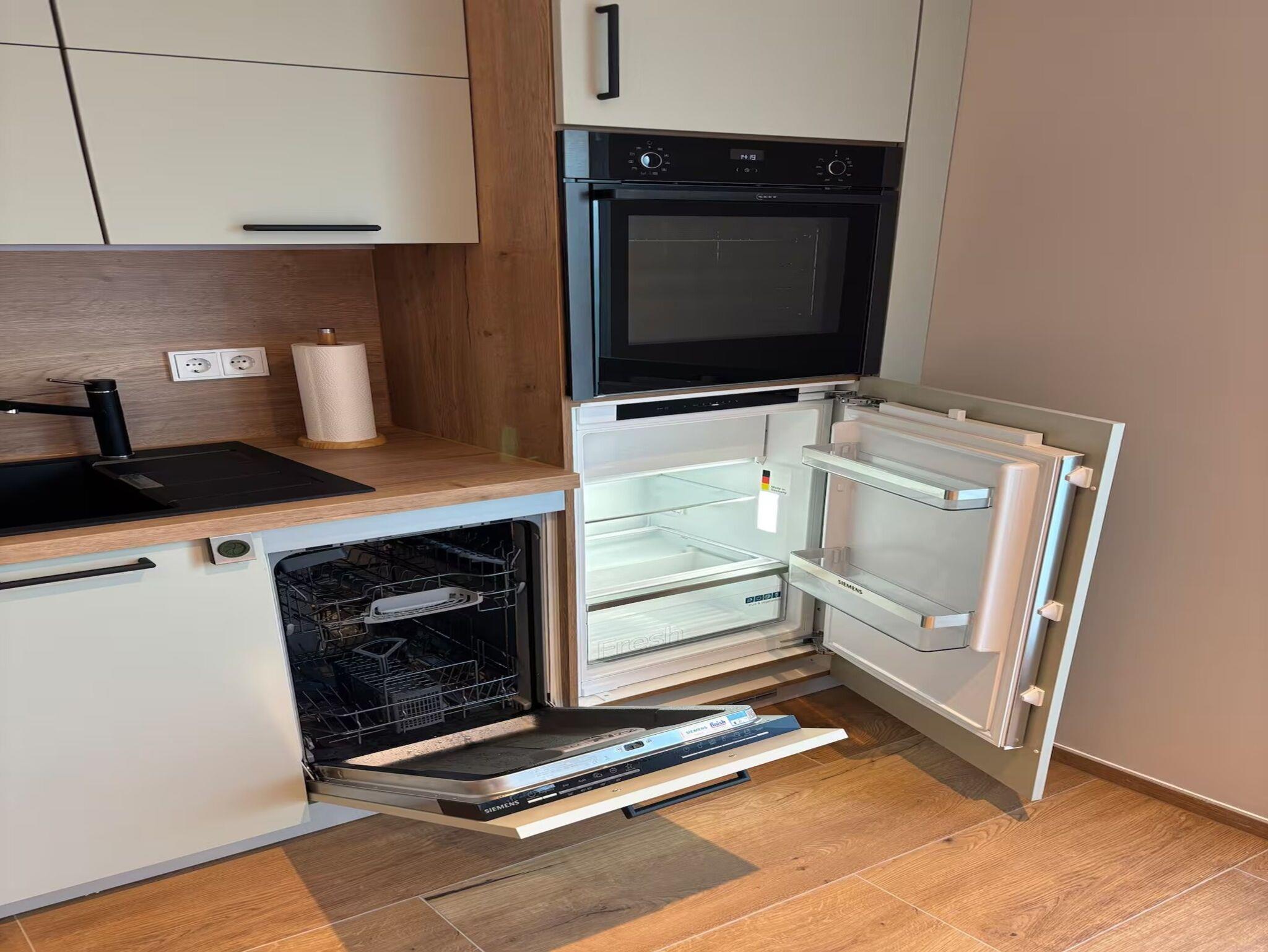 Willkommen in unserem stilvoll eingerichteten 30 m² großen Studio-Apartment – Ihrem perfekten Rückzugsort mit separatem Eingang, Blick ins Grüne und echter Dorfidylle. Das helle Apartment verfügt über ein komfortables Doppelbett mit durchgehender Matratze, ein gemütliches Schlafsofa für bis zu zwei weitere Gäste (nur auf Anfrage) sowie eine voll ausgestattete Küche mit Induktionskochfeld, Backofen, Kühlschrank mit Eisfach, Geschirrspüler, Wasserkocher, Toaster und allem, was Sie zum Kochen benötigen.