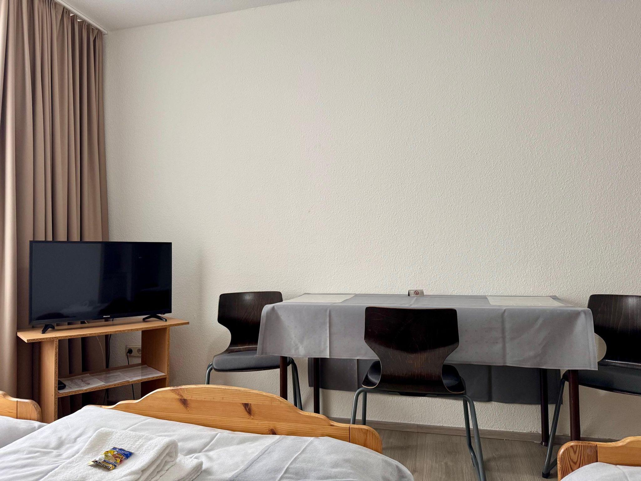 Unser Gästehaus verfügt über 68 Nichtraucherzimmer und 3 Seminarräume. Es liegt in einer ruhigen Lage. Wir bieten Einzel-, Doppel-, Dreibett- und Familienzimmer an. Hunde sind bei uns nach Absprache herzlich Wilkommen. Jedes Zimmer beinhaltet eine Dusche, WC, TV, und einen Kühlschrank. Zusätzlich sind 40 Zimmer mit einer Miniküche ausgestattet und in den Komfortzimmern im 1. OG und in den Familienzimmern befindet sich eine Kaffeemaschine. Zustellbett möglich. Reichhaltiges Frühstücksbuffet. Abschließbarer kostenloser Fahrradraum. Waschmaschine und Trockner vorhanden. Camping ist bei uns gegen geringe Gebühr möglich. Mit dem Zelt, Wohnwagen oder einem Camper auf der Wiese hinter unserem Gästehaus. Ausreichend hauseigene Parkplätze. Preise siehe Homepage.