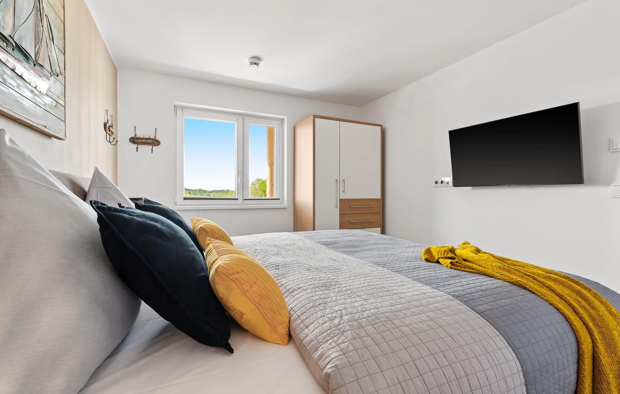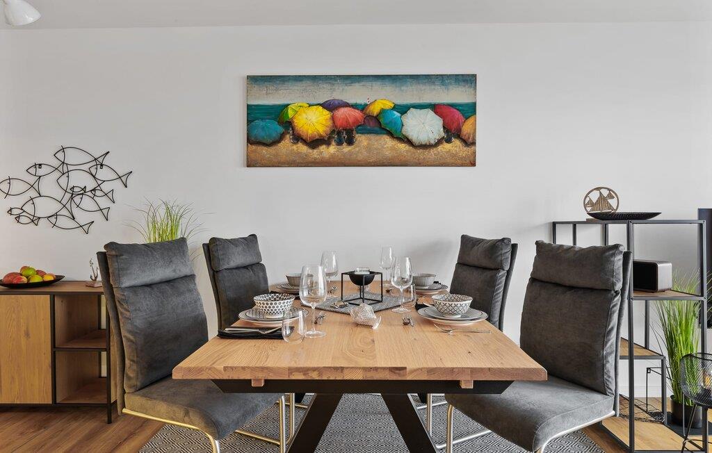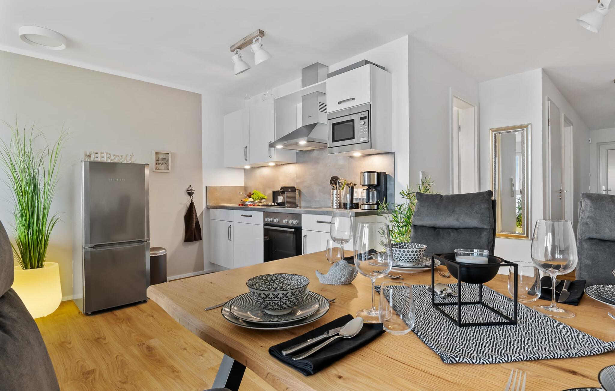 Lille og fin, central og alligevel stille, parret med en fantastisk udsigt over Olpenitz havn - det er Hafendiamant. Ferielejligheden til 2 personer ligger direkte på havnepromenaden i feriestedet Olpenitz ved Østersøen og byder på alt, hvad I kan forestille jer til en afslappende ferie ved vandet. Promenaden med sine små, fristende butikker og et velassorteret EDEKA-marked med bageri ligger bogstaveligt talt for gæstens fødder og indbyder til slentretur og indkøb. Sandstranden Weidefelder med kiosk og restaurant ligger i umiddelbar nærhed. Her er smukt på alle tider af året, ikke kun når strandstolene kalder om sommeren. I kan tage endeløse gåture her på den åbne Østersø og lade hverdagen bag jer. Så snart I kommer ind i Hafendiamant, føler I, at I er i feriehumør. Udsigten fra den kombinerede stue-spisestue med tekøkken falder direkte over altanen ud til lystbådehavnen med skibene og deres farverige travlhed. Og udsigten fortsætter med at feje over de flydende huse, østersøfjorden Slien, hele vejen til Schimmelünde fyrtårn og derefter ud til Østersøen. At ankomme kunne ikke være bedre! Moderne, høj kvalitet og komfortabelt indrettet, gæsten føler sig godt tilpas fra første øjeblik og kan give slip. Lige meget om I slapper af eller ser tv i den store, komfortable hjørnesofa med afslapningsfunktion, sidder ved spisebordet eller laver mad i det veludstyrede køkken, er udsigten til skibe og vand der altid. Fra stuen er der direkte udgang til den lille altan. Her kan I finde jer tilpas og se, hvad der foregår på promenaden og i havnen. Det ideelle sted til hyggelige grillaftener. I soveværelset garanterer en hævet polstret dobbeltseng (180x200cm) en afslappende søvn, og jeres kufferter kan nemt opbevares i den store sengeboks. Et fjernsyn sørger for underholdning i dårligt vejr. Badeværelset lader heller intet tilbage at ønske og byder på en beroligende forfriskning med bruseren på gulvniveau. Der er en parkeringsplads til rådighed foran huset. En elevator bringer jer komfortabelt til jeres ferielejlighed på anden sal. Vores yndlingssted: rolige aftener på balkonen med udsigt over lystbådehavnen og travlheden på promenaden... Bemærk venligst: OstseeResort Olpenitz er meget populært, og der bygges fortsat i parken. Ikke desto mindre kan I se frem til en 5-stjernet standard og et førsteklasses ophold. Byggeaktiviteterne kommer ikke til at forstyrre jer på ferien, og derfor gives der ikke yderligere afslag i prisen.