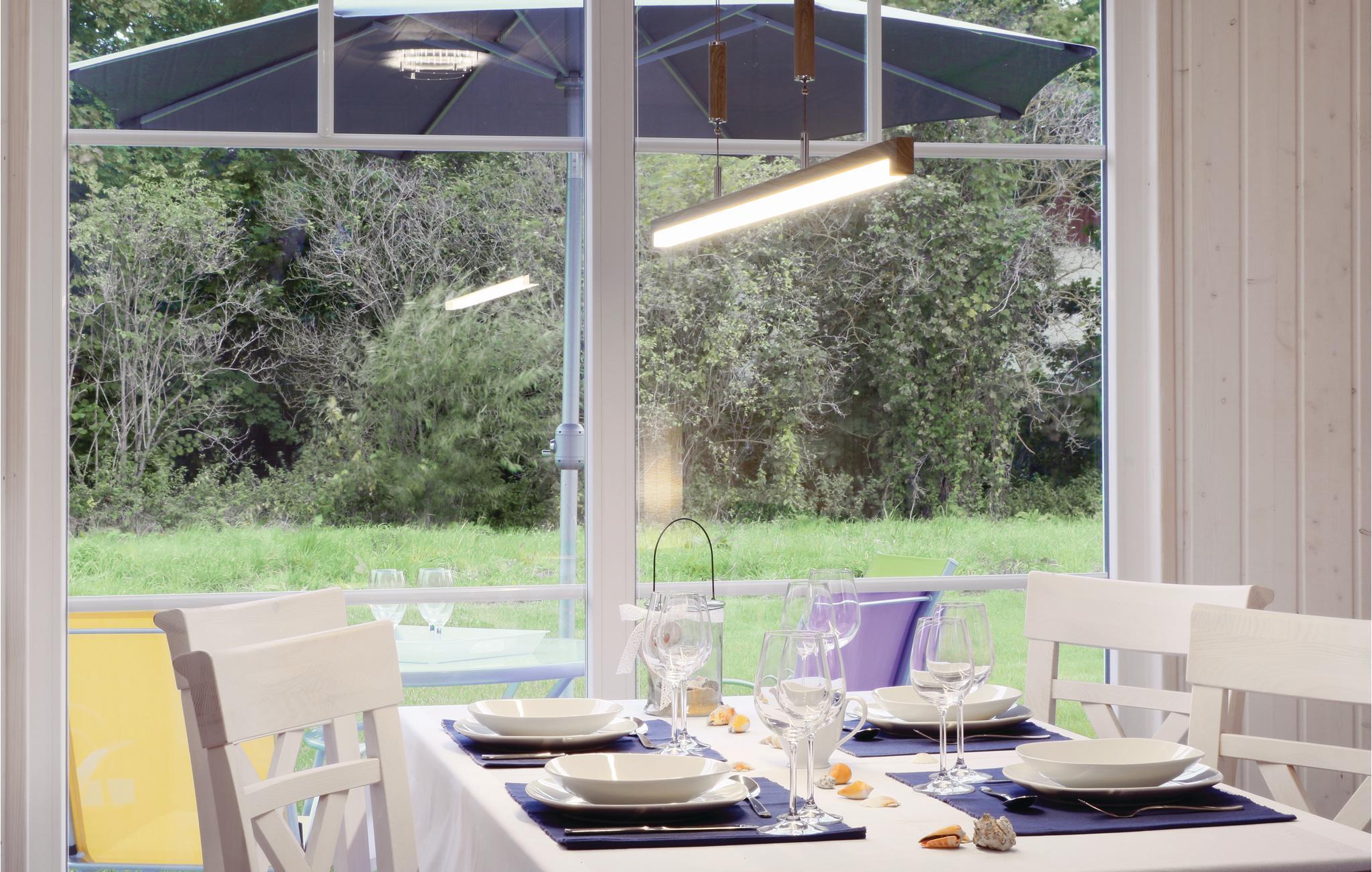 Zerpenschleuse ligger i naturskønne omgivelser omtrent en times kørsel nord for Berlin. Her finder i dette hus i første række til vandet med skøn udsigt til skibe og naturen rundt om havnebassinnet. Feriehuset er lyst og moderne indrettet i skandinavisk stil. Den åbne første sal og de store panoramavinduer, der går fra gulv til loft, sørger for, at huset er gennemstrømmet af lys, og der er udsigt til det fortryllende landskab fra alle hjørner og kroge.