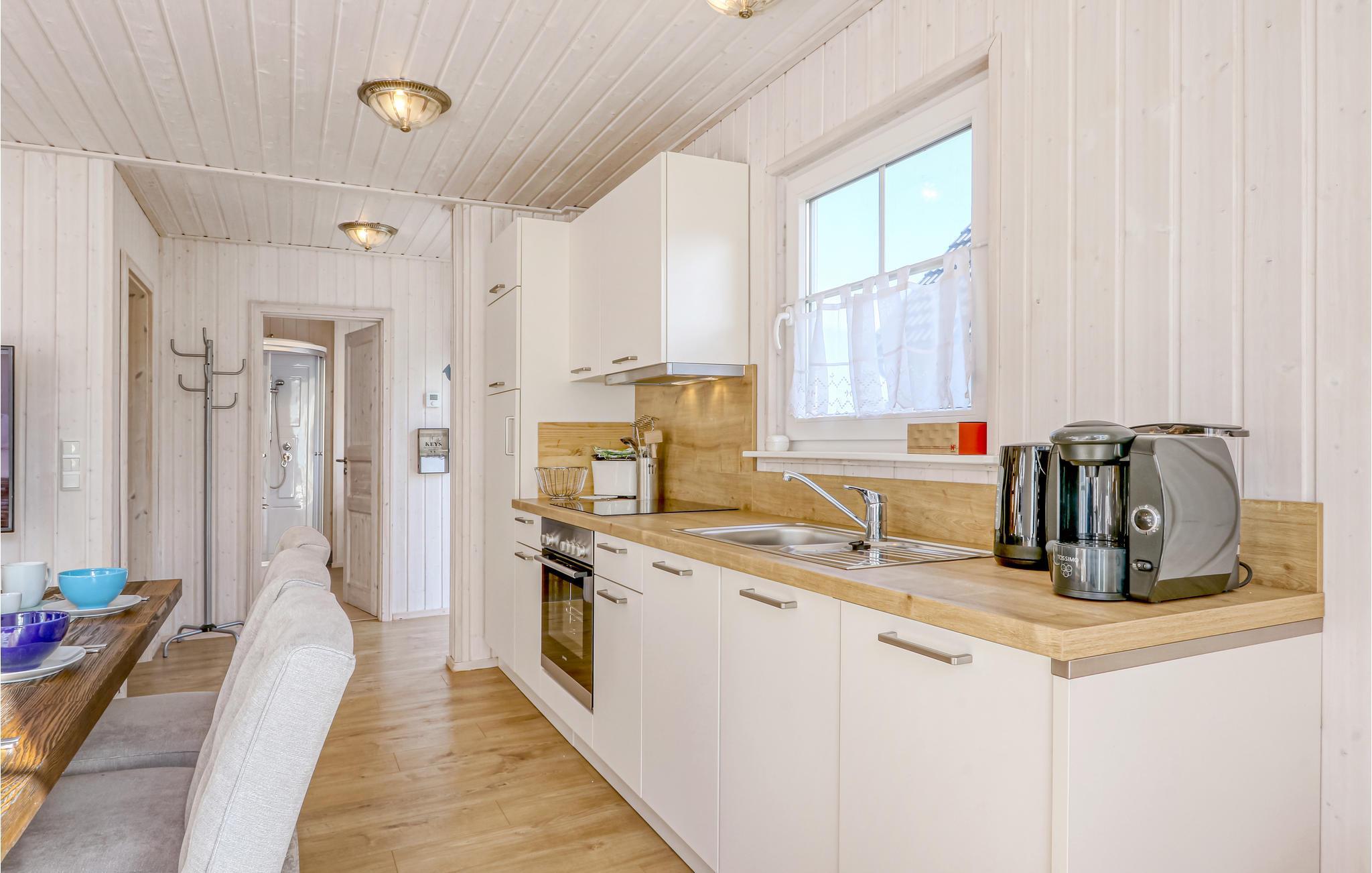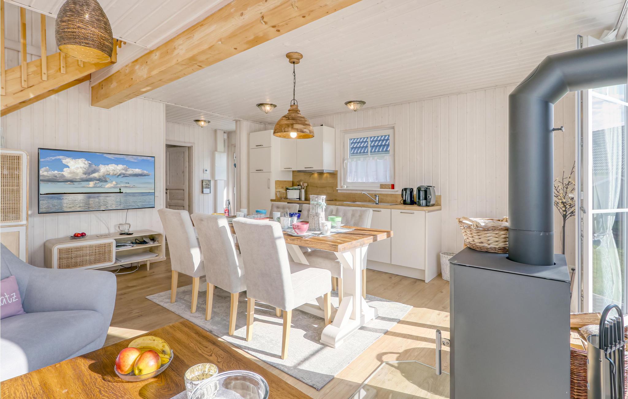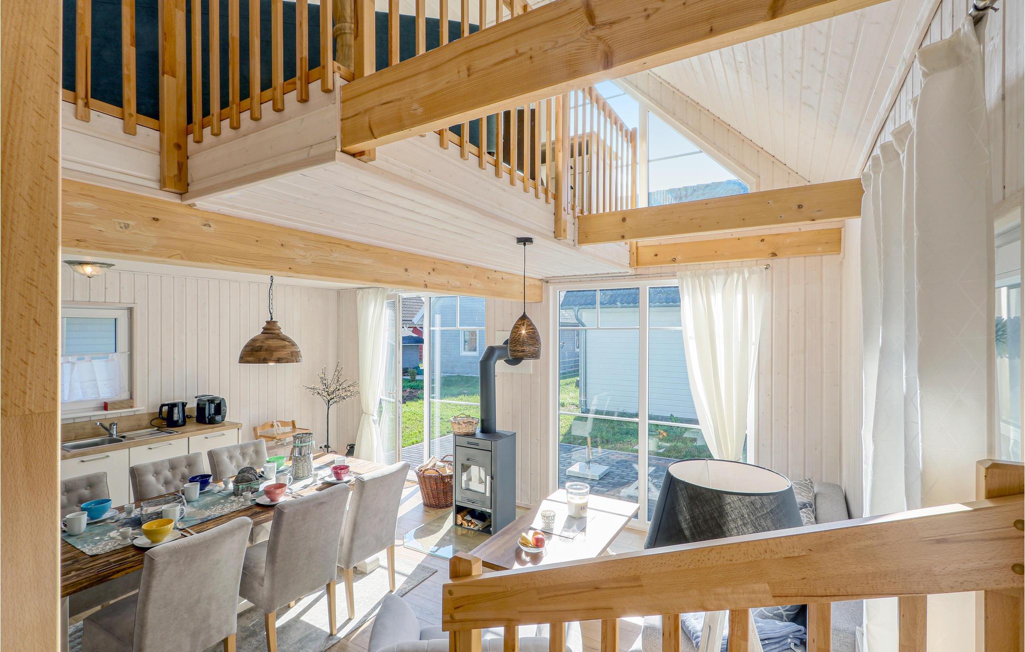 Dette lyse feriehus tilbyder plads til seks personer på to etager. På hemsen på første sal kan I nyde en enestående udsigt over ejendommen gennem gulv til loft panoramavinduer. Feriehuset har et moderne køkken med en tilstødende spisestue og opholdsstue. Dette lægger op til at spise sammen og have behagelige samtaler. Der er to separate soveværelser. Badeværelset med dagslys og wellness-brusebad runder dagen af.