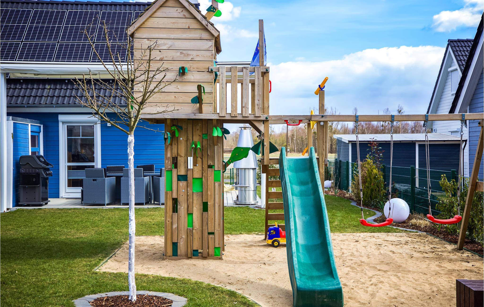 Dette feriehus er særligt husdyr- og familievenligt. Til de små er der en barneseng og -stol, og i haven er der et legetårn med sandkasse. Hele haven er indhegnet og er derfor sikker for alle feriens gæster. I skuret er der to cykler og en børnescooter samt en kælk.