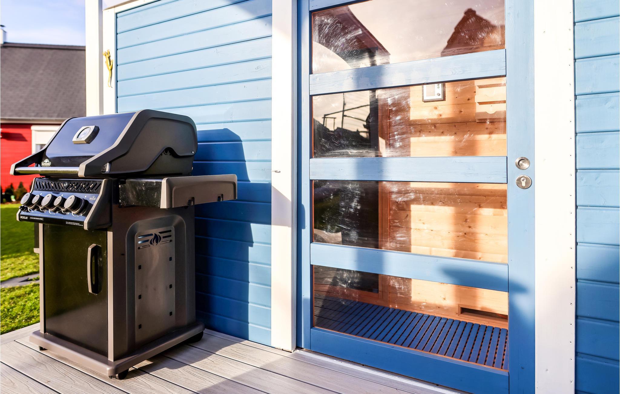 Solterrassen lægger op til ro og afslapning. Her er der en gasgrill og havemøbler af høj kvalitet klar til jer og de lune sommerdage og -aftener. Hvad enten I sidder herude, inde foran den knitrende ild eller oppe på det åbne galleri - mulighederne for afslapning er mange og gode.