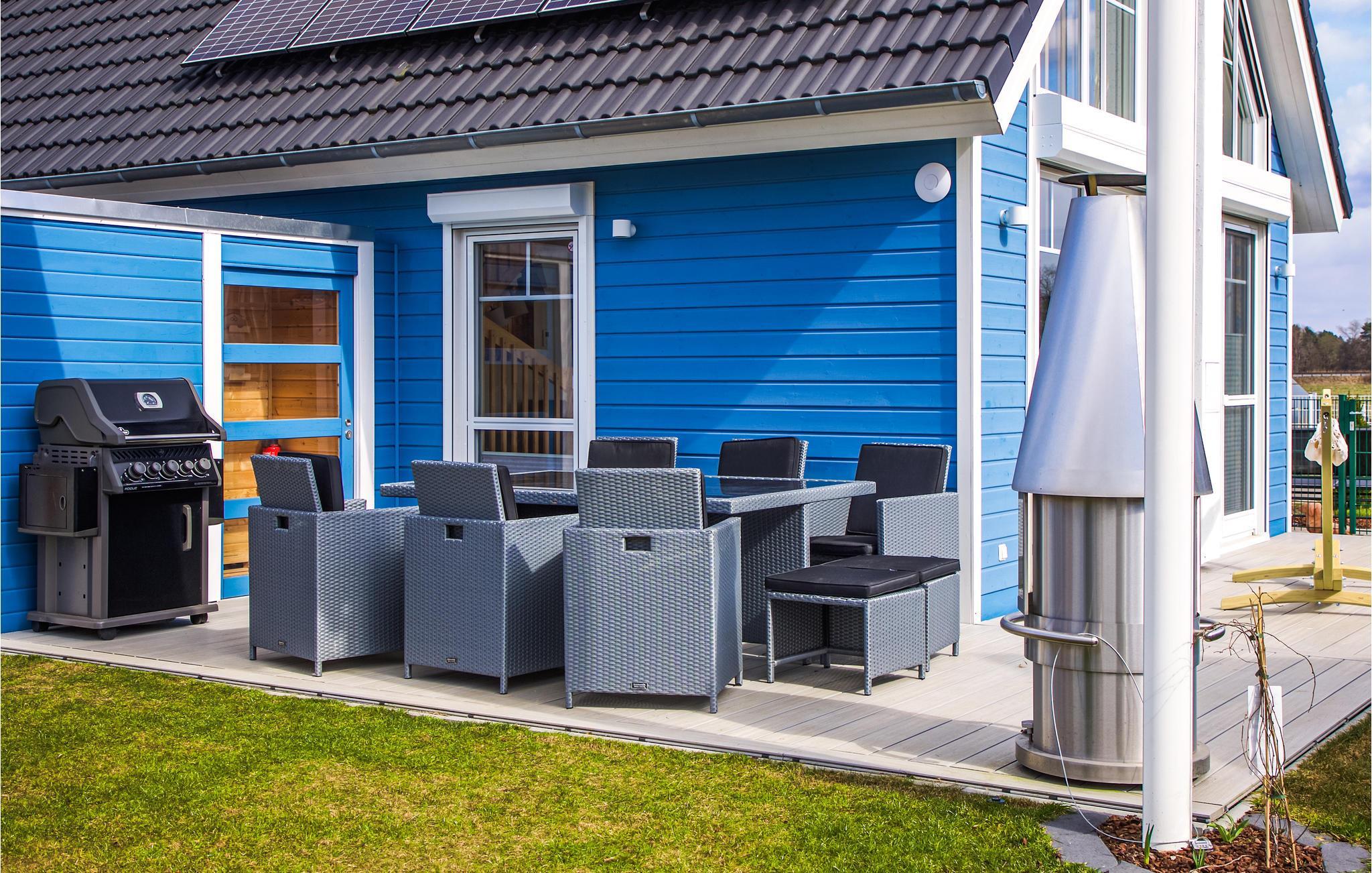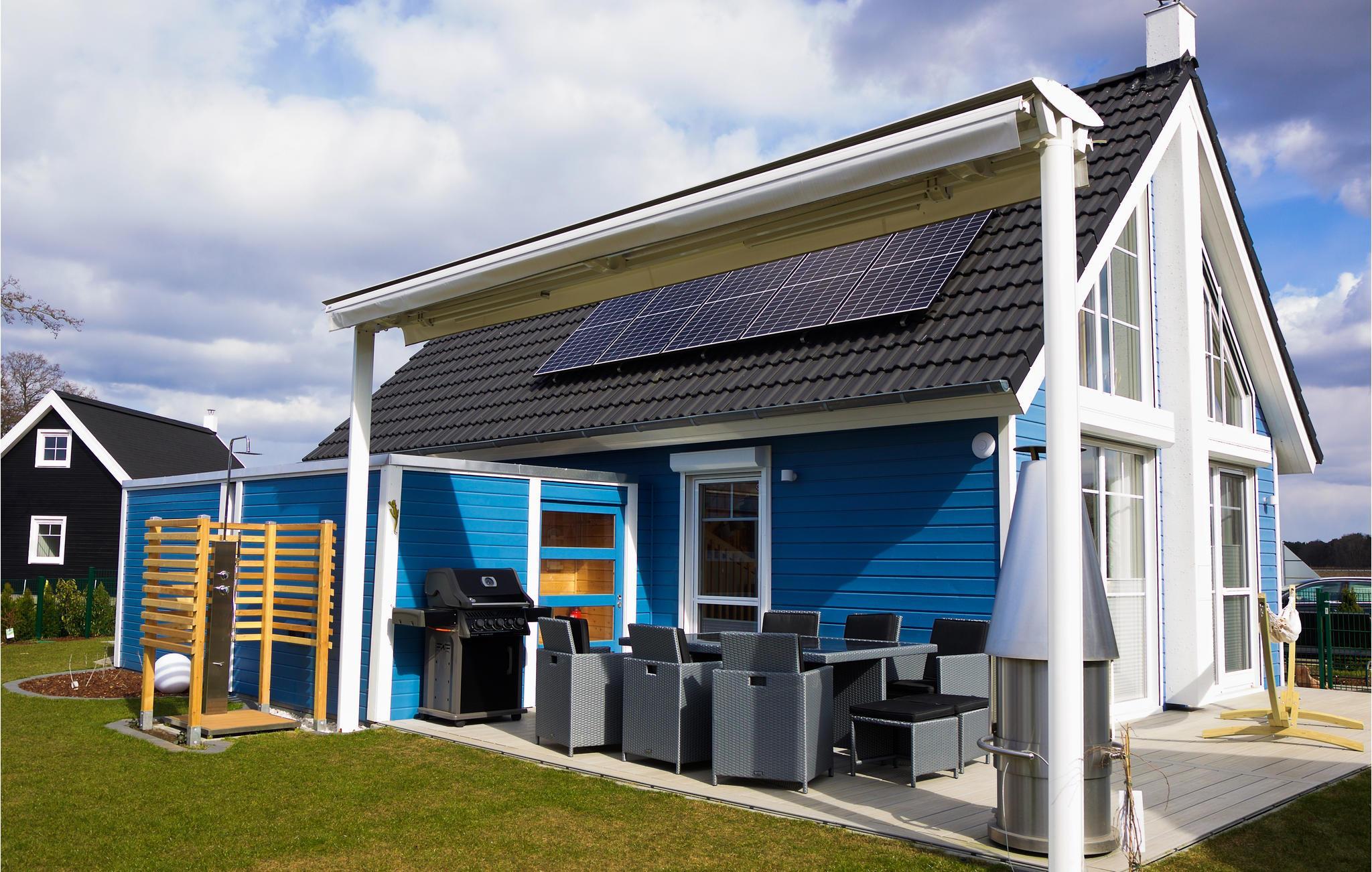 Dette lyse feriehus "Biber" fordeler sig over to etager og byder på plads til op til 6 personer. På galleriet på første sal kan I nyde en enestående udsigt over området gennem panoramavinduer fra gulv til loft (kan mørklægges efter behov). Feriehuset har et moderne, meget veludstyret køkken med tilstødende spise- og opholdsområde. Det lægger op til fælles måltider og gode samtaler. Der er to separate soveværelser. Med dagslys i badeværelset og aircondition i hele huset kan I se frem til en vellykket ferie her.