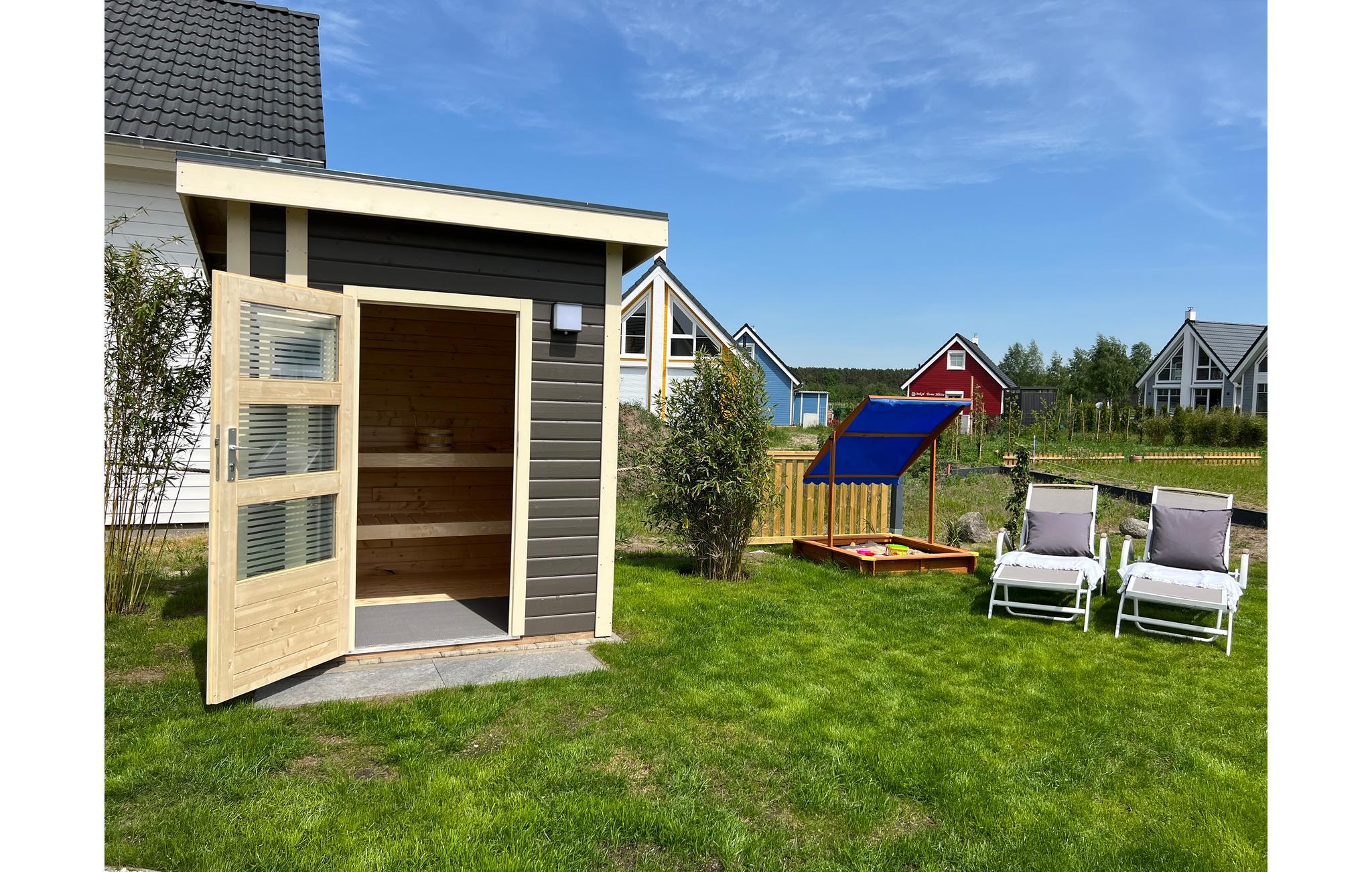 Træd udenfor og nyd den velholdte have. Slap af på terrassens havemøbler af høj kvalitet eller nyd en grill på lune sommeraftener. Brug bordtennisbordet til en venskabelig kamp, ??mens børnene leger i sandkassen. På koldere dage står den hyggelige sauna ved siden af ??huset til jeres rådighed – ideel til at afslappe krop og sind.