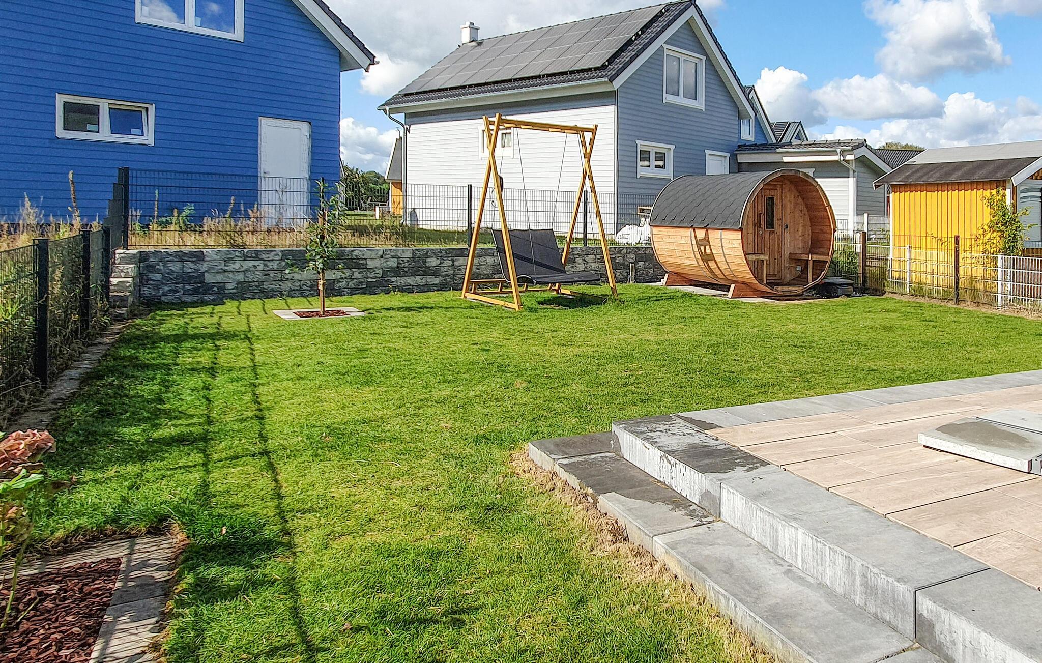 Glæd jer til hyggelige stunder på terrassen, hvor I kan begynde dagene med morgenkaffe i den moderne verandagynge eller samles og tænde op i grillen, når I vender hjem fra dagens eventyr.
