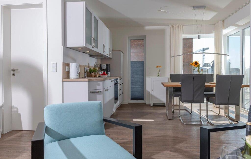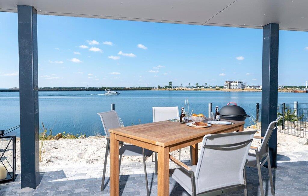 Denne stilfuldt indrettede ferielejlighed ligger på et smalt næs midt i Østersøen, mellem Østersøen på den ene side og sejl- og sportsbådshavnen i Østersøresortet Olpenitz på den anden side. Gulv-til-loft vinduer giver en fantastisk udsigt over vandet og en havnebiograf er garanteret. Den sydvendte terrasse lige ud til vandet lover sol dagen lang, mens det private wellnessområde med stor finsk sauna og fritstående badekar med havudsigt (Østersøen/Schlei) sørger for ren ferieluksus. Ejendommen er ikke indhegnet mod vandet. Og når Østersøen viser sin ånd, kan I se vandlandskabet fra jeres sofa med den knitrende ild i baggrunden. Gulvvarmen sikrer hyggelig komfort i hver sæson. Opholds- og spisestuen i åbent plan med det komfortable siddeområde inviterer jer til at blive hængende foran den knitrende pejs. Den panoramiske havnefront byder på ferieunderholdning med skibe, der sejler forbi. Køkken-alrummet er veludstyret og kan bruges til at tilberede lækre feriemåltider. Det fuldt udstyrede badeværelse med bruser på gulvniveau byder på maritime wellness-øjeblikke, da I kan slappe dybt af i den finske sauna. Denne ferieejendom, som er designet i ét plan og er rummelig, tilbyder også gæster med begrænset bevægelsesfrihed fuld feriekomfort. Et gæstetoilet giver ekstra komfort. En privat parkeringsplads og et cykelskur er placeret direkte foran huset. Ferielejligheden Hafenheimat er en lejlighed i stueetagen. Vores favoritsted: Efter en lang dag på stranden kan I nyde havnebiografen og en solnedgang fra solterrassen. Bemærk venligst: OstseeResort Olpenitz er meget populært, og der bygges fortsat i parken. Ikke desto mindre kan I se frem til en 5-stjernet standard og et førsteklasses ophold. Byggeaktiviteterne kommer ikke til at forstyrre jer på ferien, og derfor gives der ikke yderligere afslag i prisen.