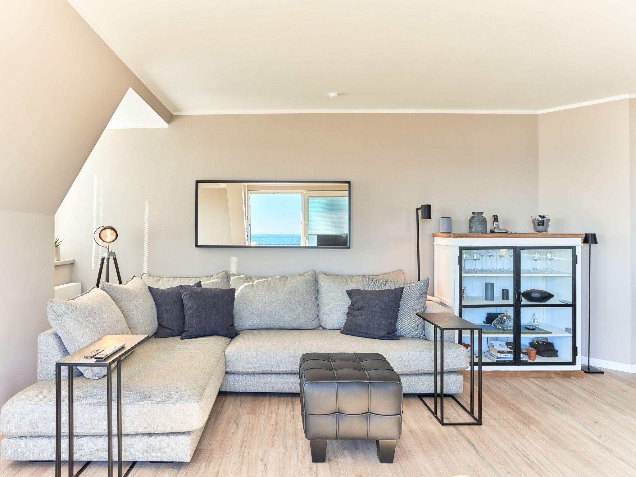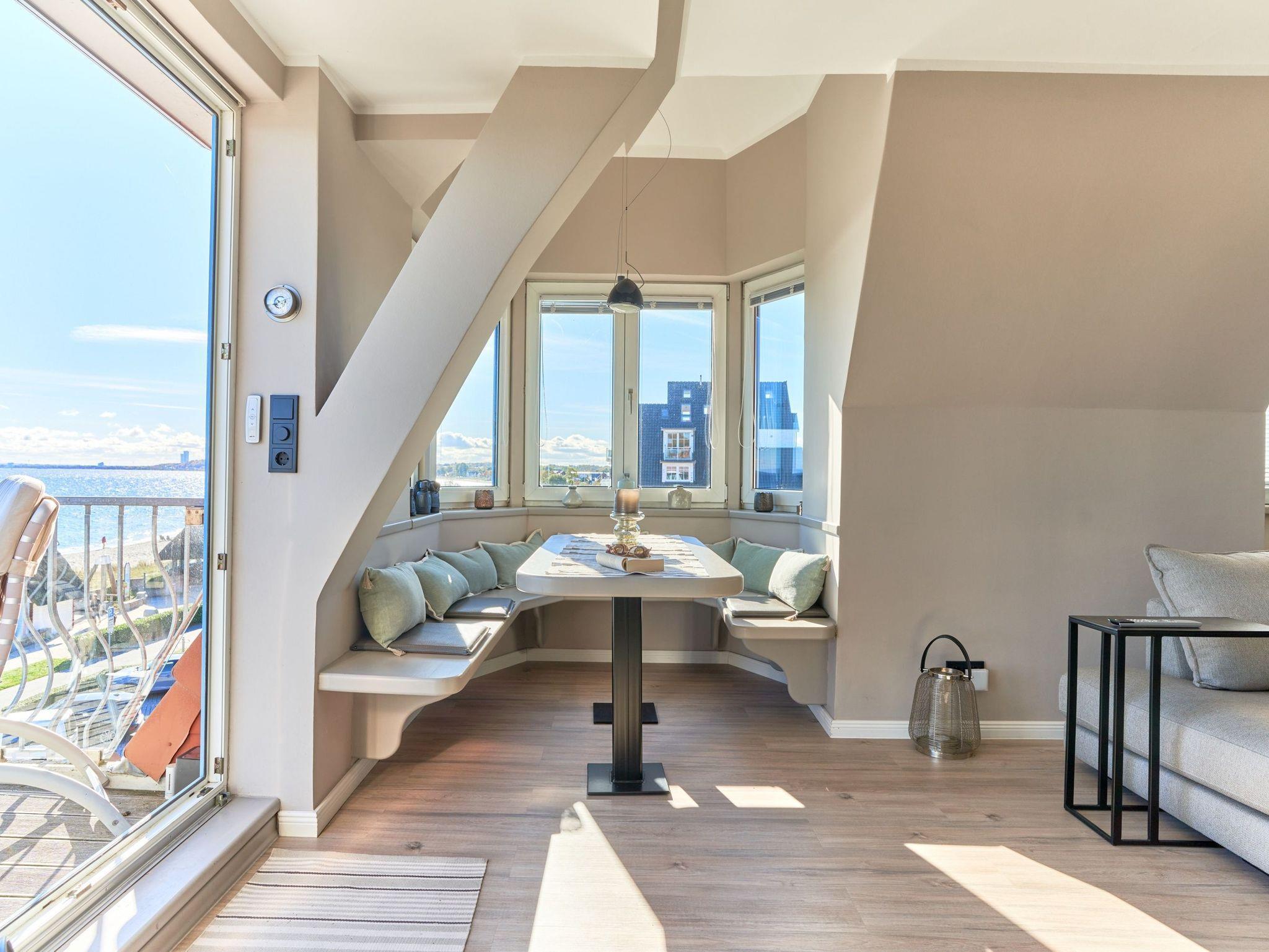100% Meerblick. 2-Zimmerwohnung, ca. 60 m² über 2 Ebenen, 2 Duschbäder, für bis zu 2 Personen, 3. OG, Tiefgaragenstellplatz (Durchfahrtshöhe 1,85m), das Haus verfügt über keinen Fahrstuhl