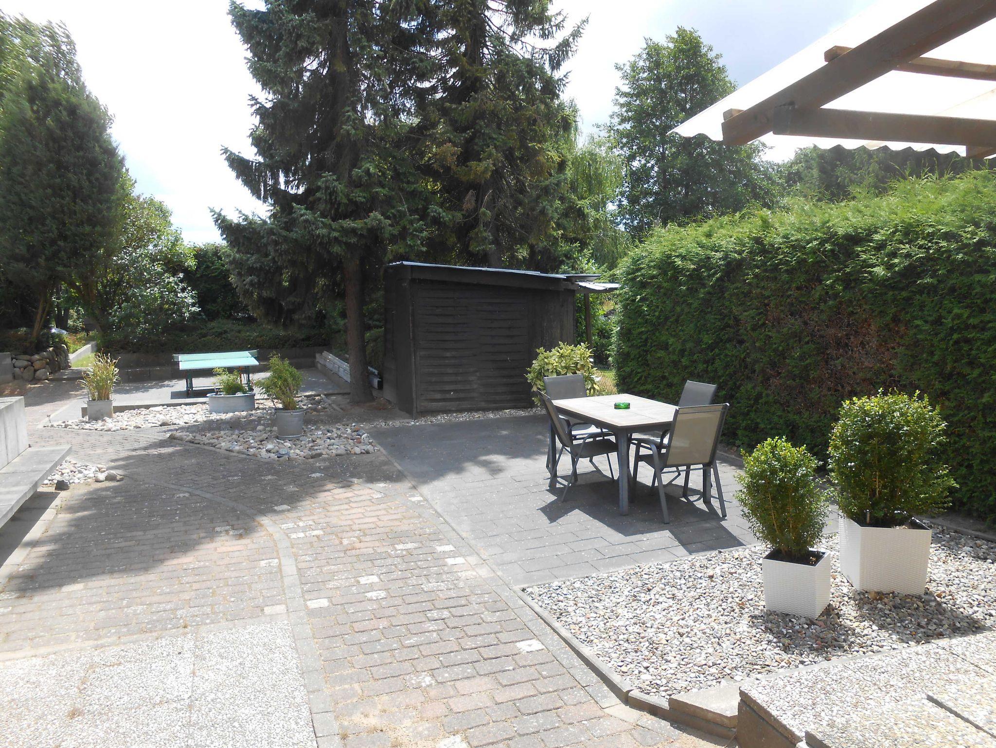 Im Garten kann man die Seele baumeln lassen. Eine Tischtennisplatte, ein Grill und diverse Gartenmöbel runden den Urlaub im Freien ab. Im hinteren Teil ist auch ein Platz im Carport für einen Wagen frei.