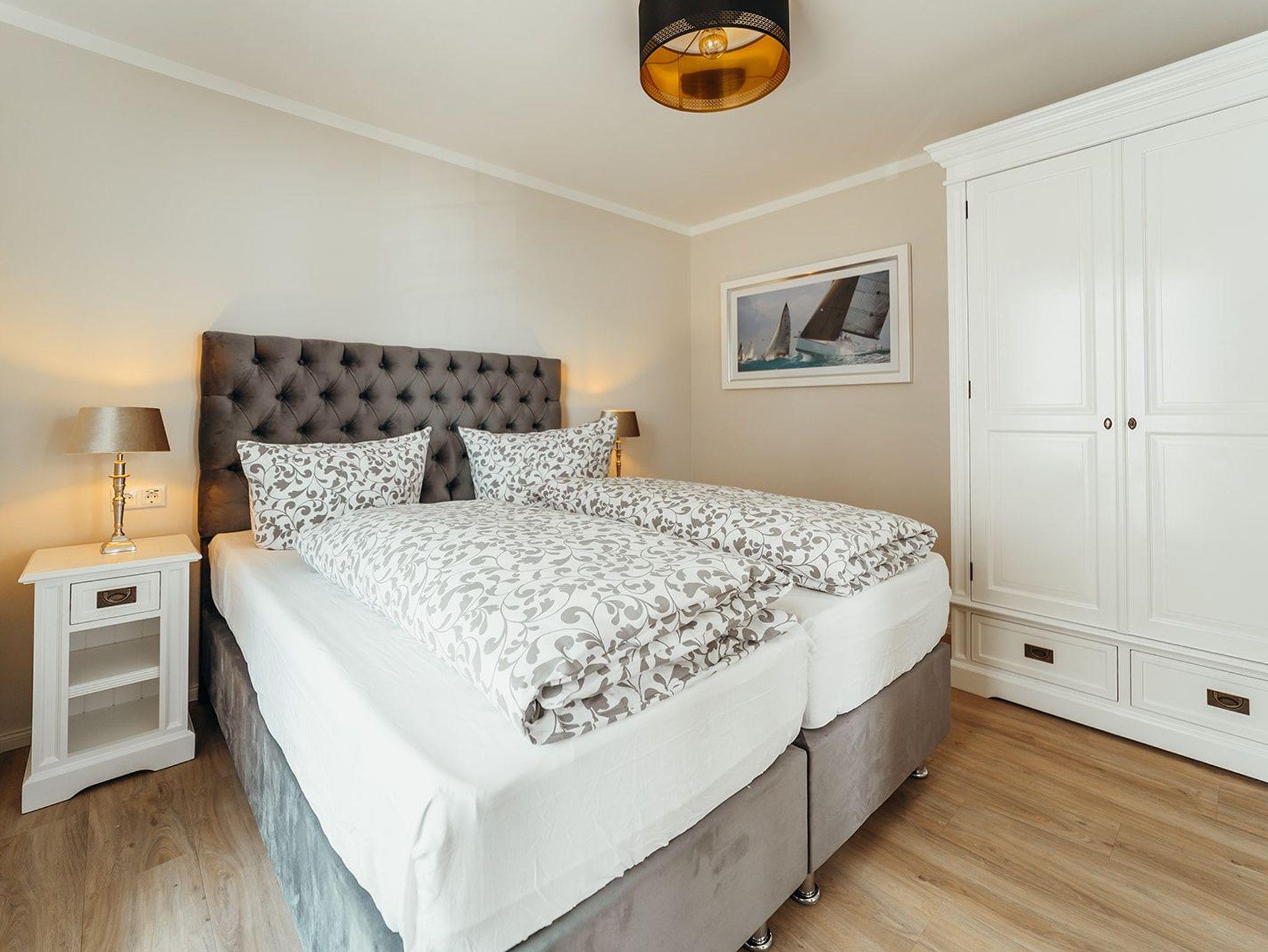 In dieser ca. 55m² großen Unterkunft befinden wir uns im 1. Staffelgeschoß des Hauses. Schon morgens beim Aufstehen genießt man auf dem vorderen Balkon, mit direktem Meerblick, den Sonnenaufgang. Am späten Nachmittag lädt der seitliche Balkon mit untergehender Sonne zu einem Prosecco ein. Zwei Schlafzimmer, ein gemütlicher Wohn-Essbereich mit Küchenzeile, ein Duschbad/WC und ein Gäste-WC bieten Raum für bis zu 4 Personen. Mit einem Aufzug gelangt man in das Ferienapartment. Das Auto parkt man sicher hinter dem Haus. Wir freuen uns, tolle Gäste begrüßen zu dürfen!