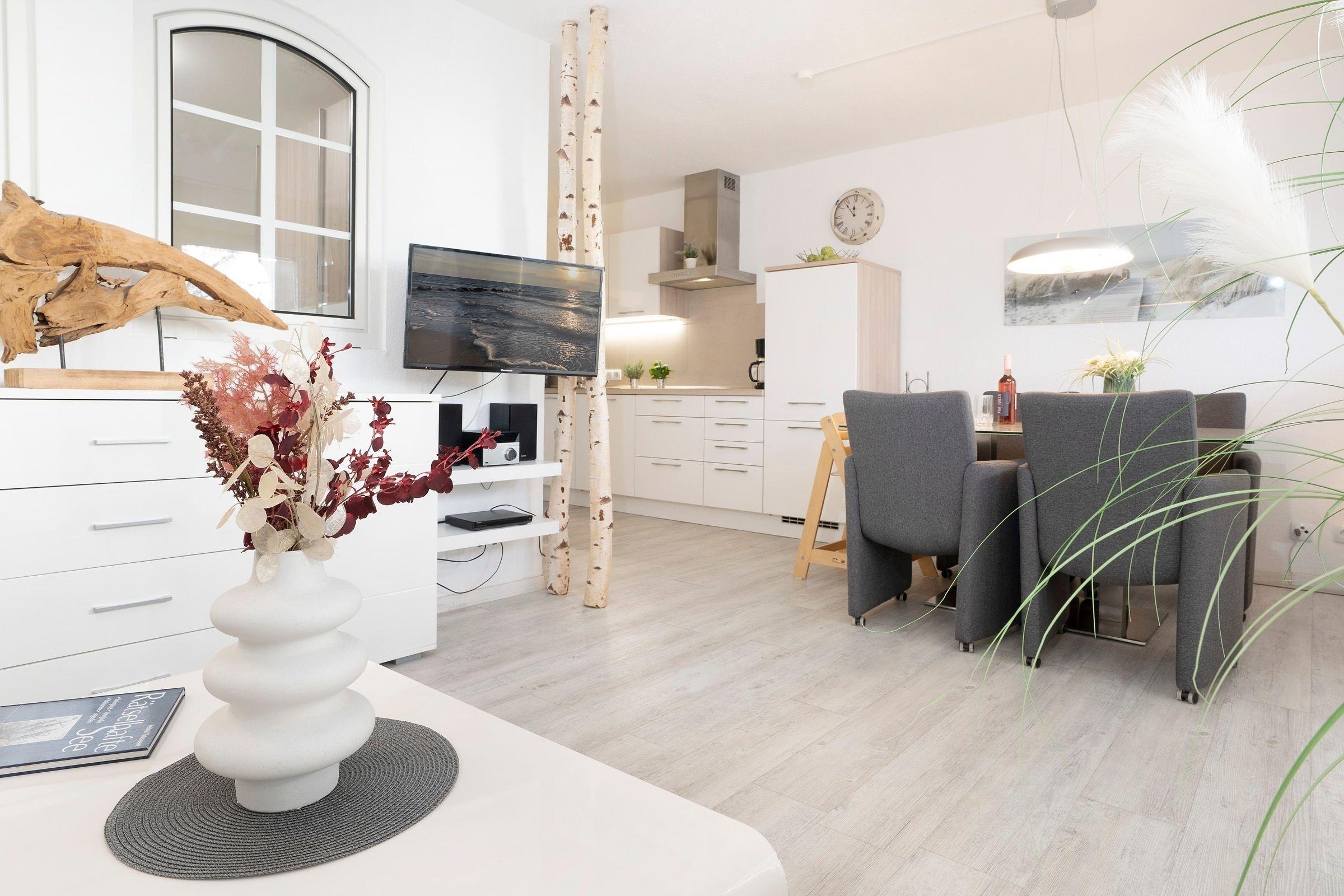 Strandnah, modern und exklusiv eingerichtet erwartet Sie die ca. 48 m² große 2-Zimmer Ferienwohnung für max. 4 Personen im Erdgeschoss der Appartementanlage.