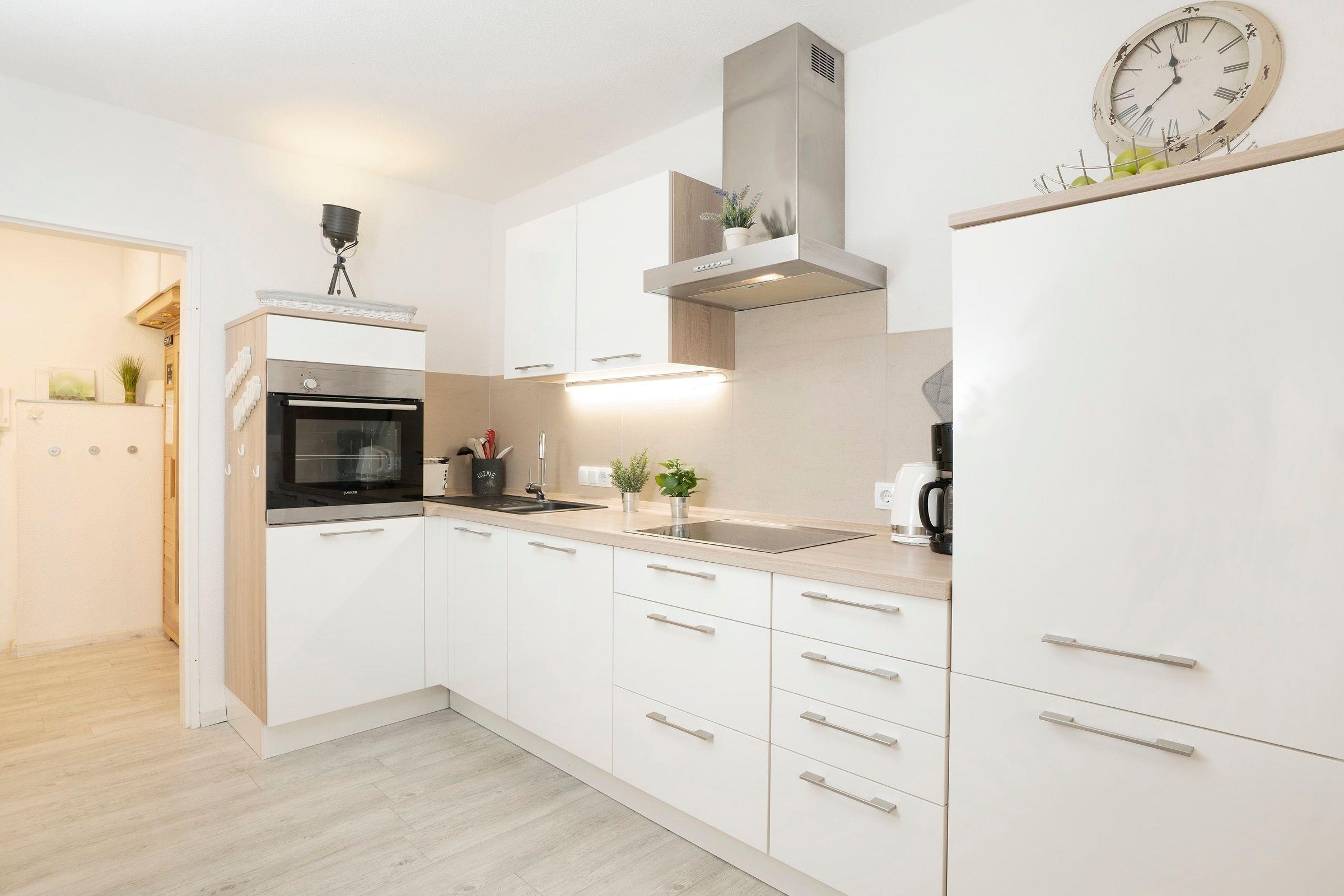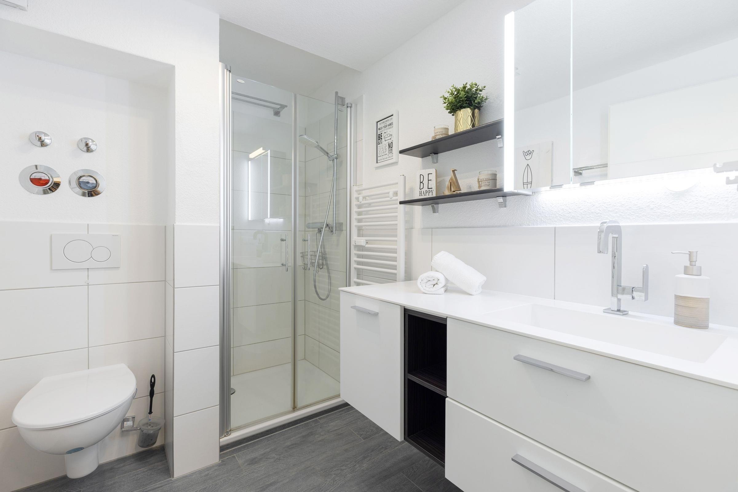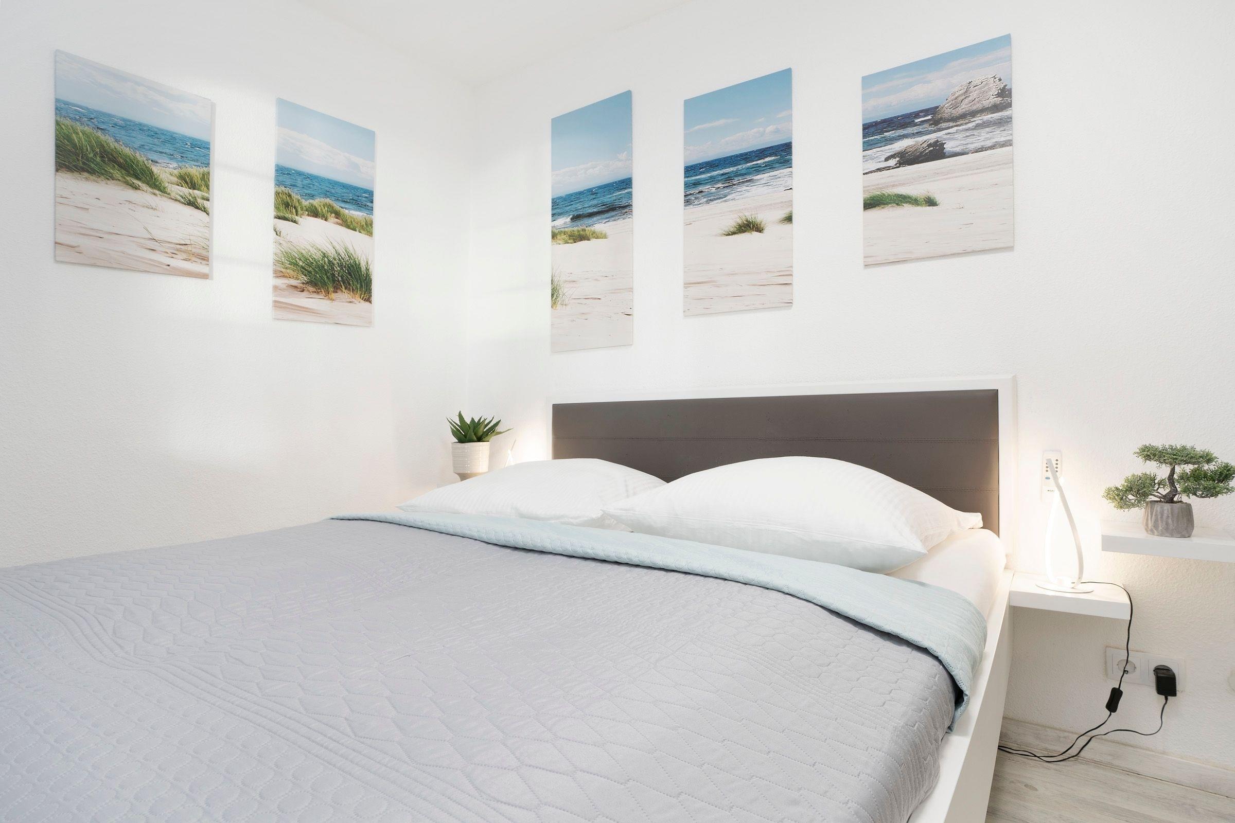 Von der Tiefgarage gelangen Sie zu Ihrer Ferienwohnung im Erdgeschoss. Lassen Sie nun den Alltag hinter sich und kommen Sie an. Lichtstrahlen von den großen Fenstern zum Balkon fallen in den Flur mit Garderobe. Gehen Sie gerne durch bis zum überdachten Balkon und öffnen Sie erst einmal die Tür. Sie werden verwöhnt mit einem traumhaften Ausblick auf die Ostsee und können die leicht salzige Luft genießen. Der Wohnraum mit offener Küchenzeile und Essplatz ist perfekt durchdacht aufgeteilt. Der Wohnbereich ist behaglich mit Sofa, Kommode, Flat-TV und dezenten Accessoires gestaltet. Das Beste ist – an kühlen Tagen können Sie auch vom Sofa weit auf das Meer sehen. Das Brunobett-Schlafsofa lässt sich mit wenigen Handgriffen zu einer weiteren Schlafmöglichkeit (160x200cm) verwandeln. Die Boxspring-Technologie mit langlebiger Nosag-Federung verspricht einen erholsamen Schlaf. Die Küchenzeile ist voll ausgestattet, hier können Sie je nach Lust und Laune kochen und ganz neben bei den Tisch zum Essen decken. Am schönen Essplatz kann man nicht nur genüsslich essen sondern auch lustige Spieleabende verbringen.
