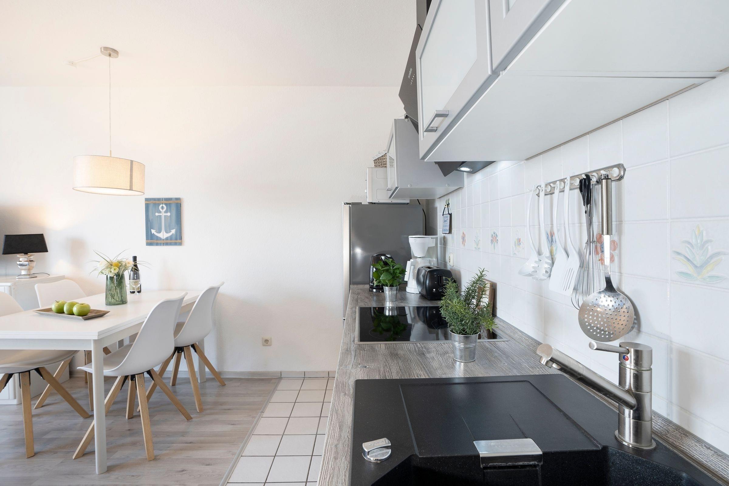 In der 1. Etage bietet diese charmante Ferienwohnung mit insgesamt 2 Zimmern, einer Wohnfläche von ca. 49 m², Balkon, 1 separates Schlafzimmer mit einem Boxspringbett (durchgehende Matratze 160x200 cm) und ein Wohnzimmer mit einer gemütlichen Wohnlandschaft. Auf der Liegefläche von 170x180cm ist eine weitere Schlafmöglichkeit vorhanden. Die im Raum integrierte Küche ist voll ausgestattet. Mahlzeiten lassen sich zubereiten ohne von der Familie getrennt zu sein - Ausreichend Platz für bis zu 2 Erwachsene und 2 Kinder ist vorhanden.
